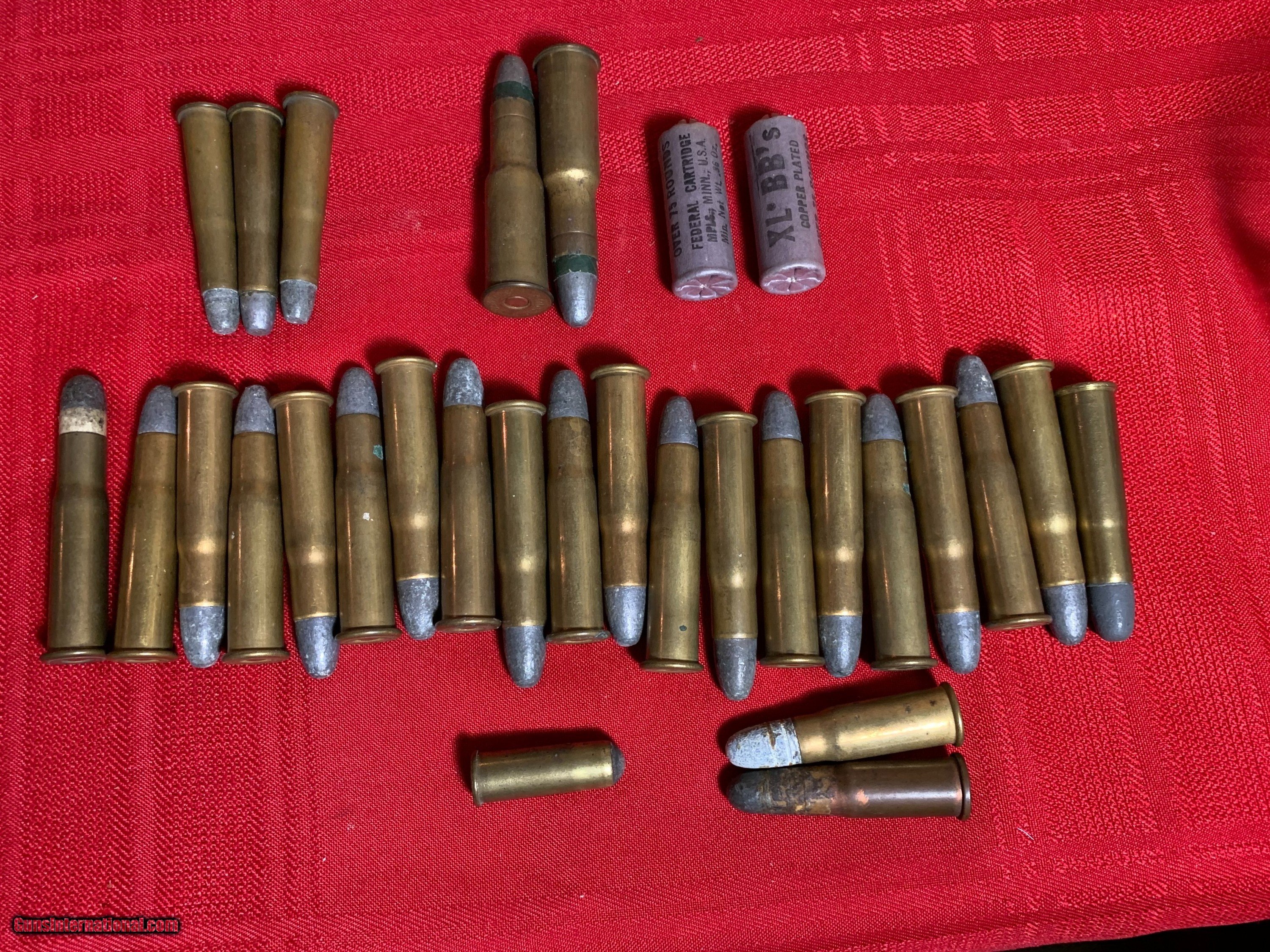 Description: 1. 43 spanish 20 rounds 2. 41 Swiss 2 rounds 3. 38-56 Winchester 3 rounds 4. 44-40 round ball 1 round 5. Federal BBs 2 tubes SOLD Rifle Caliber: .38-56 Winchester, 11.15x58R |
