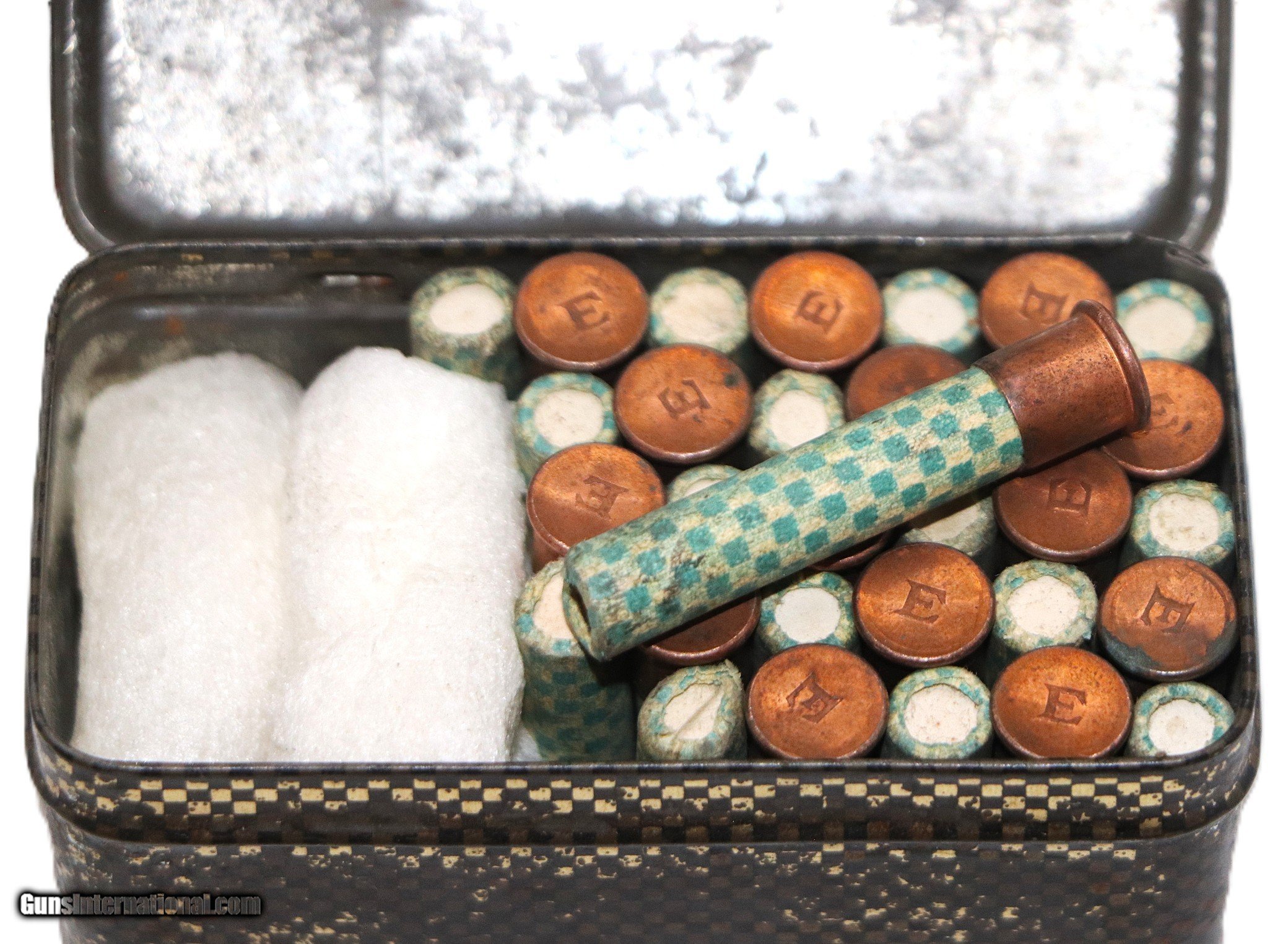 Description: H. Utendoerffer of Nurnberg/Bavaria, Partial tin of 31 Rounds of 9MM SHOT, Tin is in Good condition with significant scuffing, ammo is VG+. Shotgun Gauge: 9mm RF Price: $135.00 Shipping: $15.00 Contact Seller |