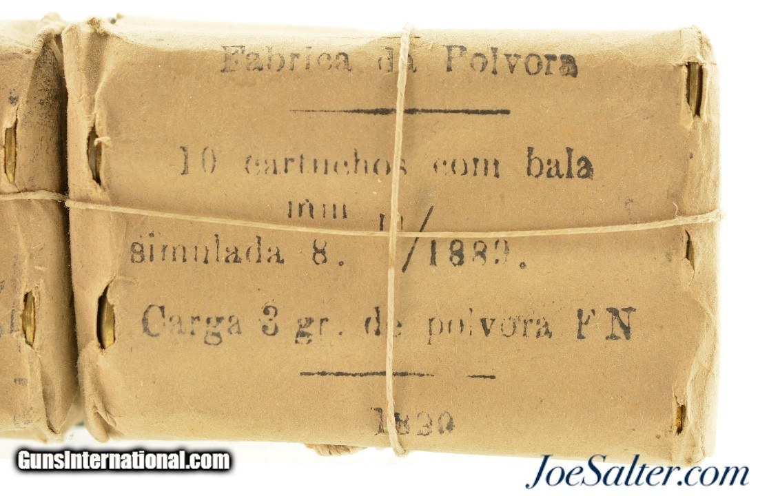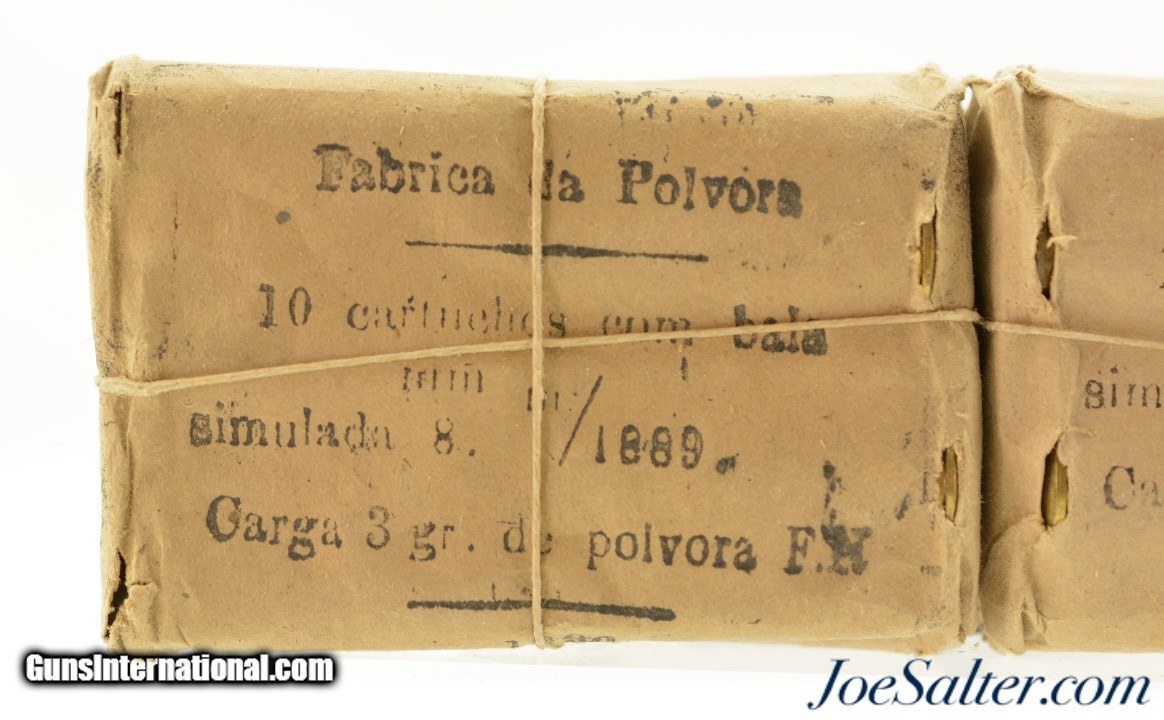 Description: This is for 2 x 10 Round paper packets of Portuguese Kropatschek cartridges. These cartridges are blank and are marked for the 1888 kropatschek series of rifles. The packets are dated 1890. These packets can be collected and used for display or they can be converted to shootable cartridges for both the kropatschek and the Guedes single shot rifle.; Price: $49.95 Contact Seller |