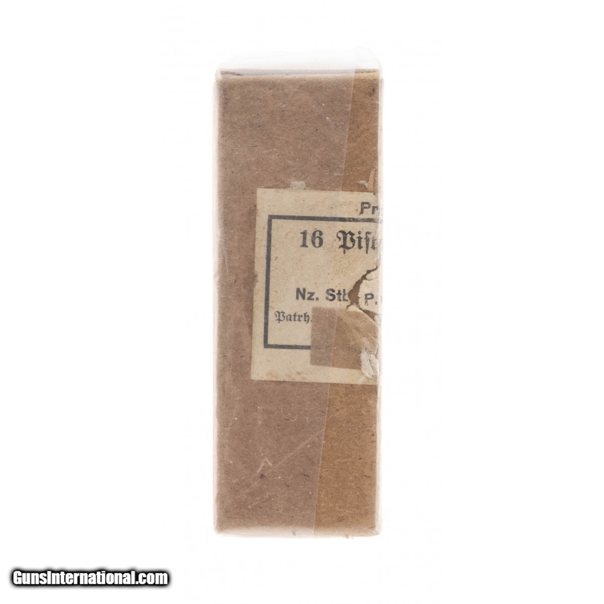 Description: " 9mm Para Made In Germany 1943 Full Box of 16 Patronen. SOLD |