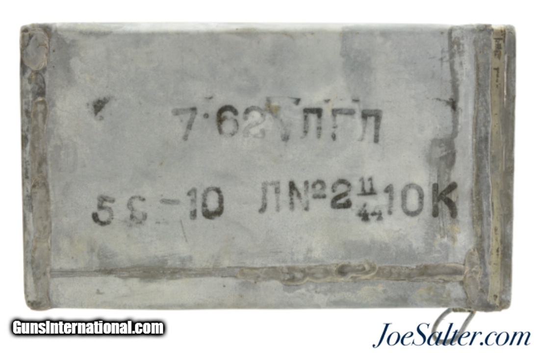 Description: This is a sealed tin of 7.62x25 Tokarev Bulgarian 85gr. FMJ Ammo. The tin is in excellent original condition with very little signs of oxidation, no rips or tares. The 7.62x25mm Tokarev cartridge is a bottle-necked pistol cartridge widely used in former Soviet and Soviet satellite states, China and Pakistan. SOLD |