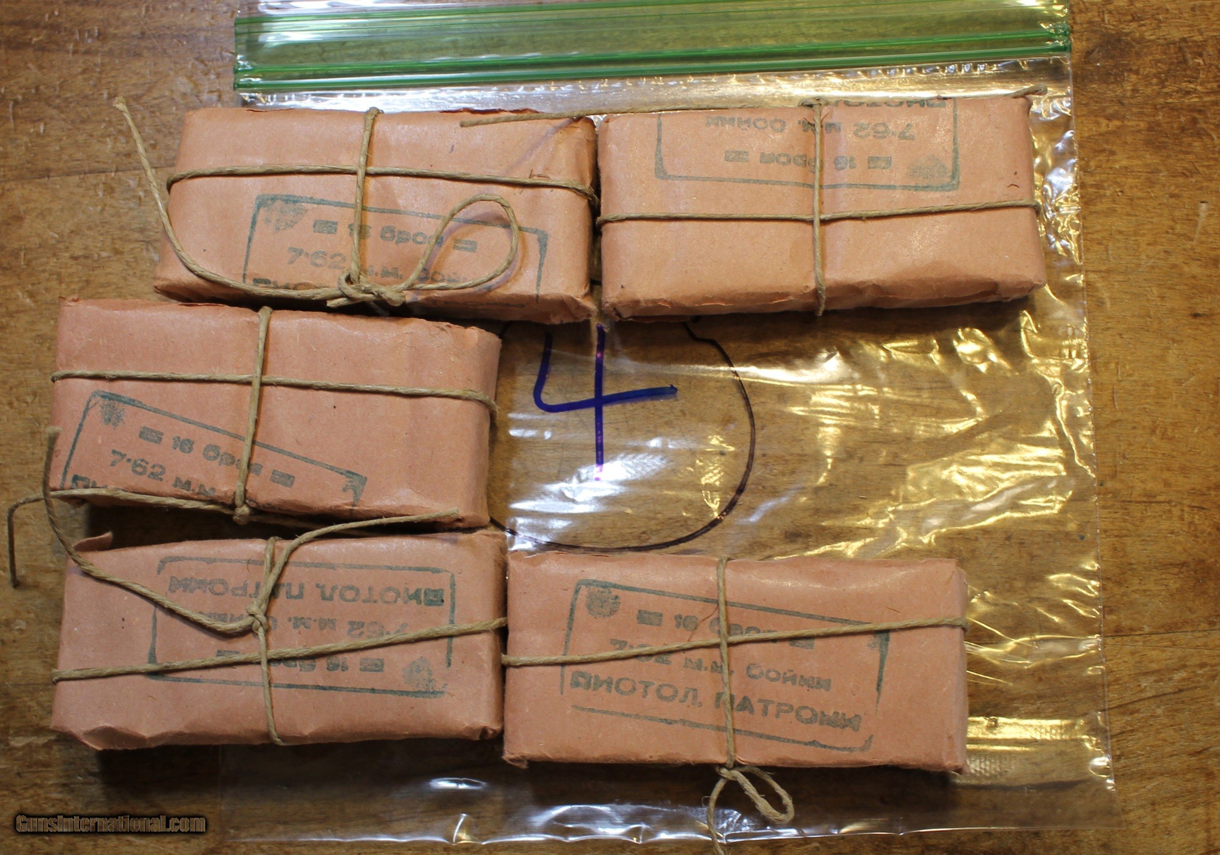 Bulgarian 7.62 x 25 Tokarev 85 gr. FMJ Ammo 80 rounds in 5 16 round packages