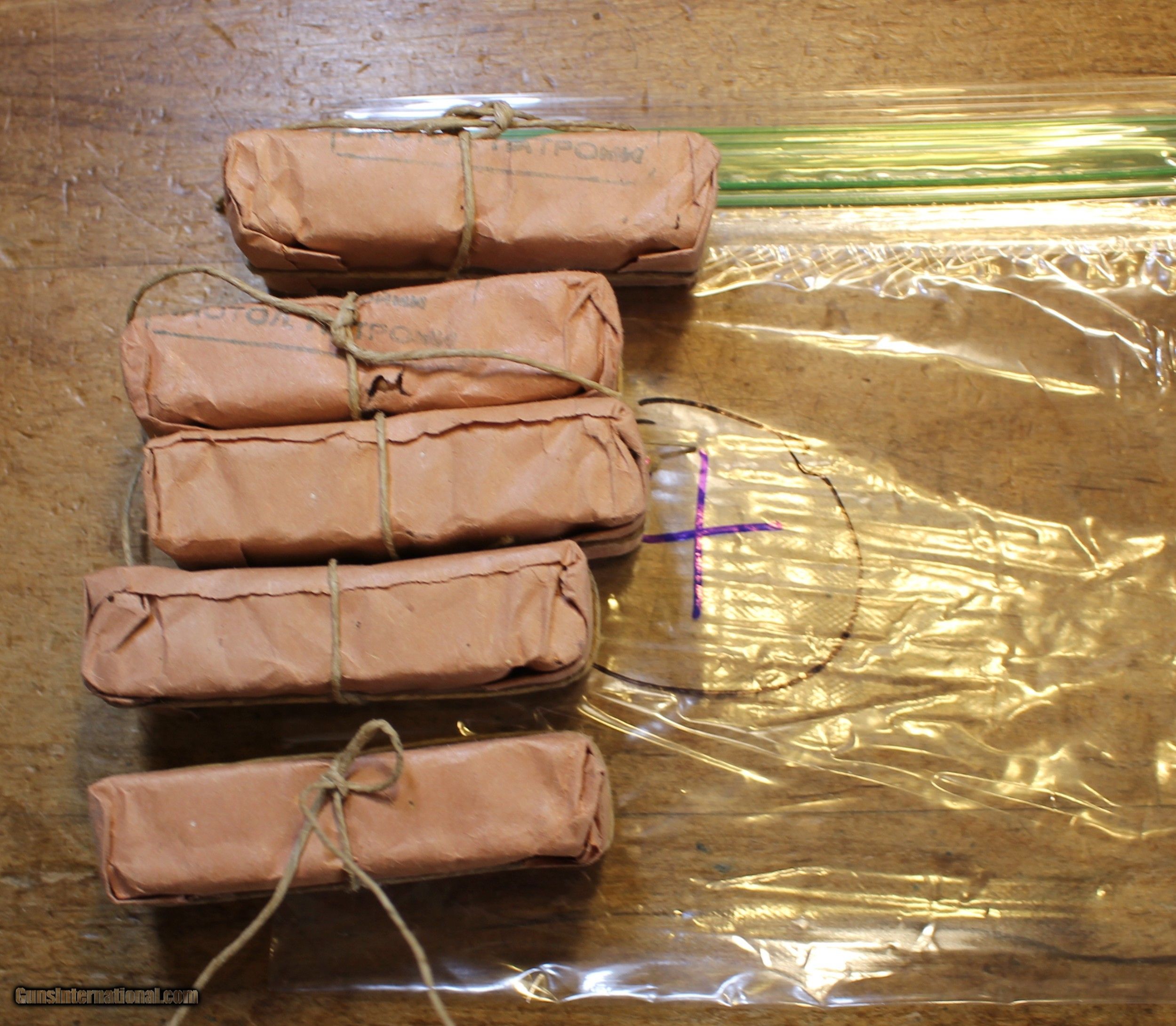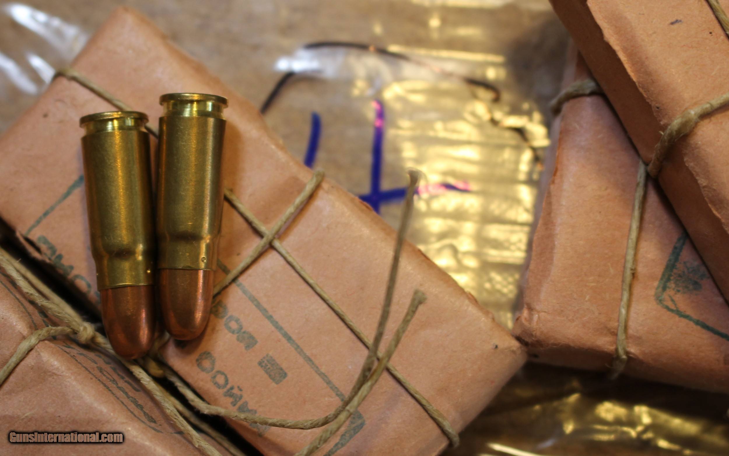 Description: We have Bulgarian 7.62 x 25 Tokarev 85 gr. FMJ Ammunition. There are 80 rounds in 5 packages of 16 round each. The head stamp as you can see is 54. This is surplus ammunition. From internet searches on the writing on the paper on the packages we are guessing as we do NOT speak Bulgarian........Berdan Primed and Bi Metal Bullet and Brass Case. The exact rounds you see are the exact rounds you get. Just old stock. REAL Old Stock. We are sorting through some 5000 rounds of all kinds of store or shelf stock and under the counter inventory. Some earlier such as this listing. So "New Old Stock" fits. We have listed some in our other listings that was dated 1939 This item came from the estate of a FFL/SOT/Gun Smith/Gun store. There will be countless more items listed as time permits. We figure it will take about 4 to 6 years to post the entire store to sell for the estate. This is NOT a liquidation, just selling for the estate. There are no lists and will be no list. Way too much to even try. Please check our other listings for more items as we sort through for the estate. There is about 5000 Rounds of all kinds of shelf or store stock of vintage and unique older ammuntion. Please also check our Webpage and or Facebook page at P&T Partners Shipping is $15 for UPS Ground to the lower 48. If you have any questions, you can email or call the number in the ad. Payment is Personal Check, USPS Money Order or Credit Card (BY PHONE ONLY) and add 3.5% for the credit card use). NOTE:....... Buyer RESPONSIBILITIES............ Buyer is responsible for knowing if they are eligible to purchase this ammunition based upon their location/age restrictions. Buyer assumes all liability for ammunition and agrees to not misuse it in any manner. Must be 21 years or older to purchase. SHIPPING...... Our shipping days are Tuesday and Friday. All loaded ammunition is shipped UPS Ground. We do not say to avoid any responsibility if you have a PORCH PIRATE problem in your area. You may want to pay extra for Signature at your end. . SOLD |
