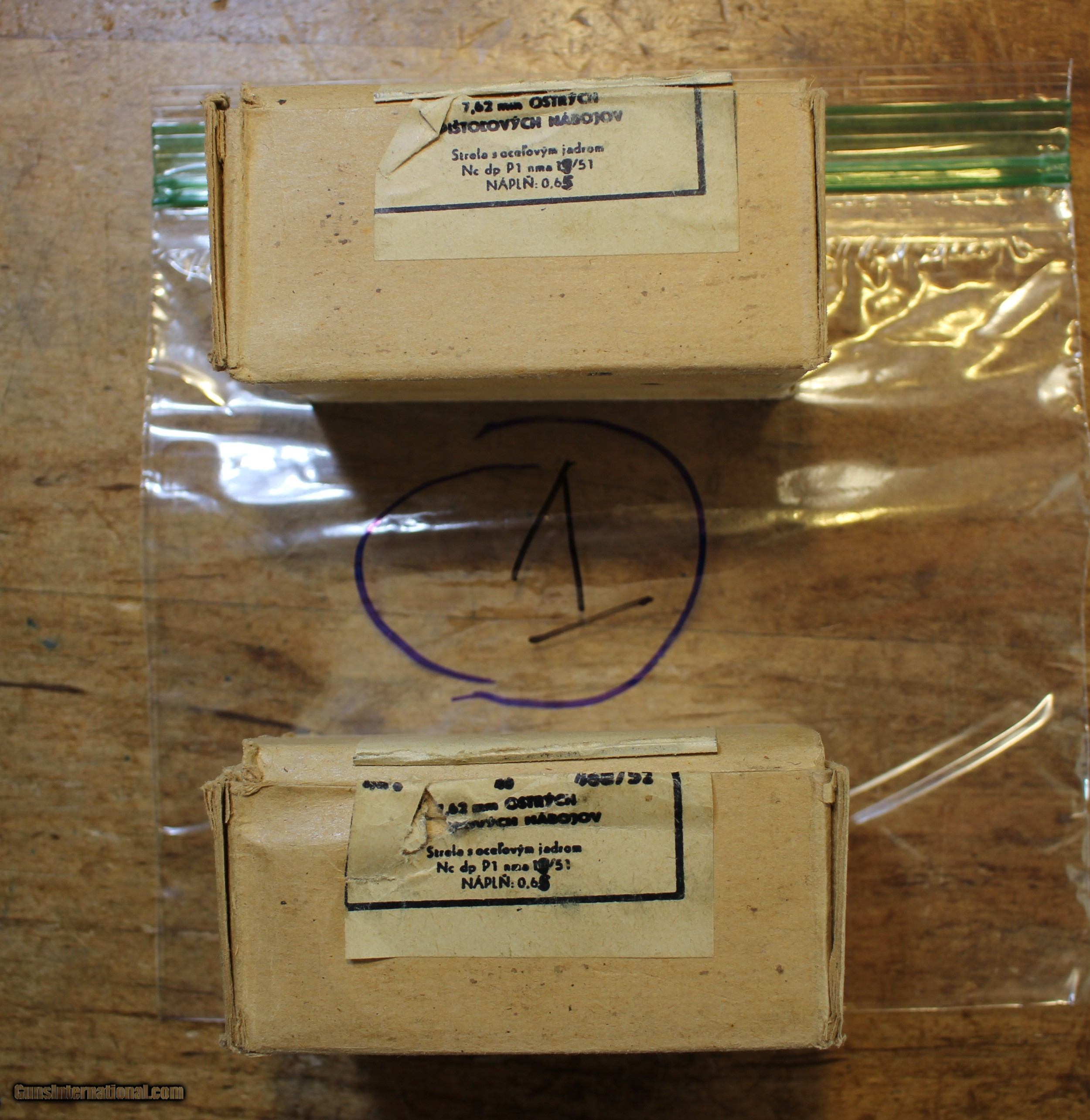 Description: We have Czech 7.62X25 85 Grain FMJ 80 Rounds 2 Boxes of 40 on 8 Round Stripper Clips Military Surplus. There are 80 rounds in two 40 round boxes inside those 40 round package are 5 stripper clips with 8 round each. The head stamp as you can see is 52. This is surplus ammunition. From internet searches on the writing on the paper on the packages we are guessing as we do NOT speak Czech........Steel case, corrosive primer, magnetic bi-metal jacketed lead core bullet. Packed 8 rounds per stripper clip, 5 clips per 40 round box. The exact rounds you see are the exact rounds you get. Just old stock. REAL Old Stock. We are sorting through some 5000 rounds of all kinds of store or shelf stock and under the counter inventory. Some earlier such as this listing. So "New Old Stock" fits. We have listed some in our other listings that was dated 1939 This item came from the estate of a FFL/SOT/Gun Smith/Gun store. There will be countless more items listed as time permits. We figure it will take about 4 to 6 years to post the entire store to sell for the estate. This is NOT a liquidation, just selling for the estate. There are no lists and will be no list. Way too much to even try. Please check our other listings for more items as we sort through for the estate. There is about 5000 Rounds of all kinds of shelf or store stock of vintage and unique older ammuntion. Please also check our Webpage and or Facebook page at P&T Partners Shipping is $15 for UPS Ground to the lower 48. If you have any questions, you can email or call the number in the ad. Payment is Personal Check, USPS Money Order or Credit Card (BY PHONE ONLY) and add 3.5% for the credit card use). NOTE:....... Buyer RESPONSIBILITIES............ Buyer is responsible for knowing if they are eligible to purchase this ammunition based upon their location/age restrictions. Buyer assumes all liability for ammunition and agrees to not misuse it in any manner. Must be 21 years or older to purchase. SHIPPING...... Our shipping days are Tuesday and Friday. All loaded ammunition is shipped UPS Ground. We do not say to avoid any responsibility if you have a PORCH PIRATE problem in your area. You may want to pay extra for Signature at your end. . SOLD |