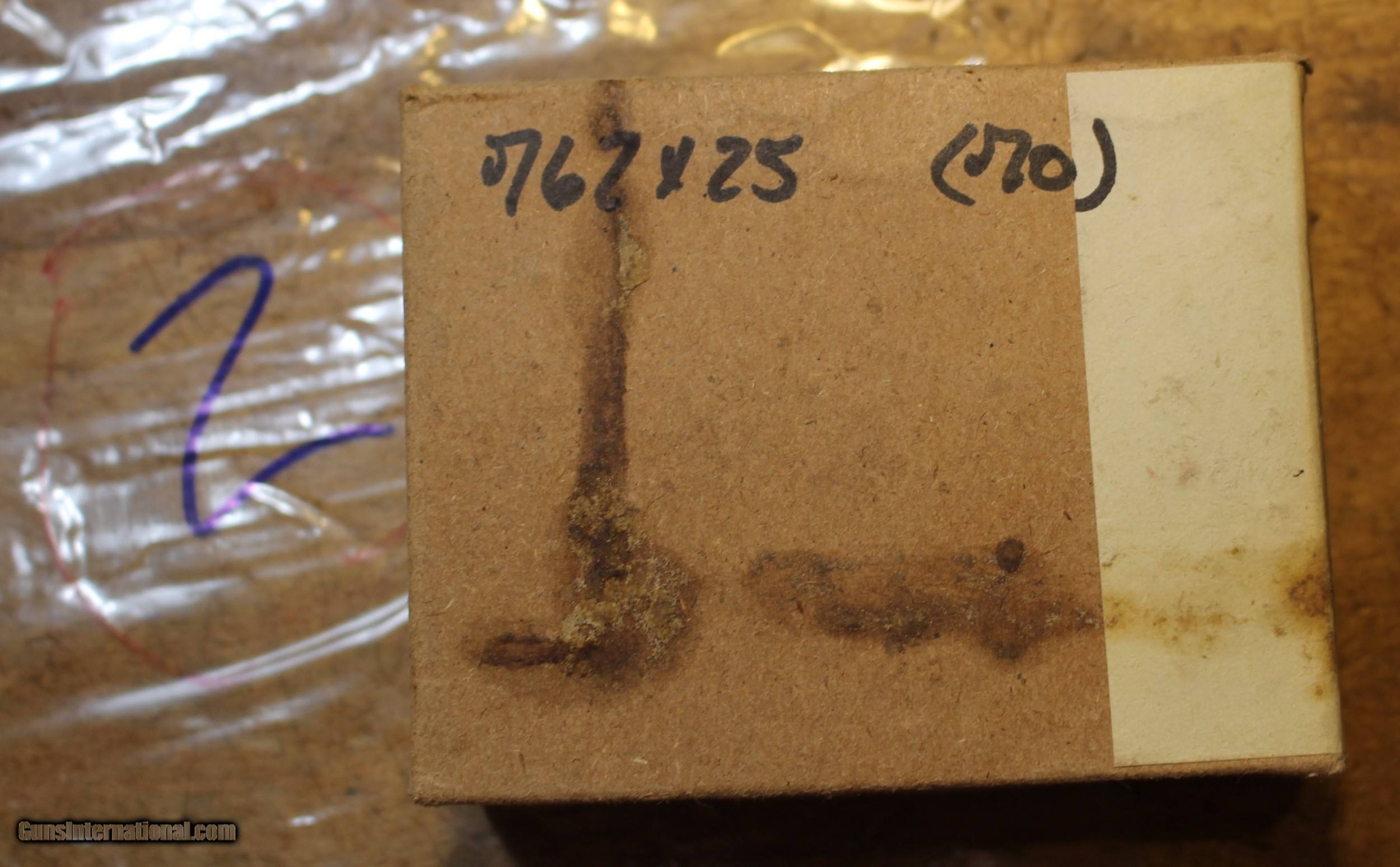Description: We have either Yugoslavian or Croatian 7.62X25 85 Grain FMJ 70 Round Box is probably Military Surplus. There are 70 rounds in the box and the box you get is still SEALED. The rounds you see are from one box we opened so you can see the bullets and head stamp. Not this particular listing. The head stamp as you can see is 57. This is surplus ammunition. From internet searches on the writing on the paper on the packages we are guessing as we do NOT speak Yugolsavian or Croatian ........Believed to be corrosive primed. Projectile is 85 grain and 100% non-magnetic. The exact sealed box you is the exact box you get. Just old stock. REAL Old Stock. We are sorting through some 5000 rounds of all kinds of store or shelf stock and under the counter inventory. Some earlier such as this listing. So "New Old Stock" fits. We have listed some in our other listings that was dated 1939 This item came from the estate of a FFL/SOT/Gun Smith/Gun store. There will be countless more items listed as time permits. We figure it will take about 4 to 6 years to post the entire store to sell for the estate. This is NOT a liquidation, just selling for the estate. There are no lists and will be no list. Way too much to even try. Please check our other listings for more items as we sort through for the estate. There is about 5000 Rounds of all kinds of shelf or store stock of vintage and unique older ammuntion. Please also check our Webpage and or Facebook page at P&T Partners Shipping is $15 for UPS Ground to the lower 48. If you have any questions, you can email or call the number in the ad. Payment is Personal Check, USPS Money Order or Credit Card (BY PHONE ONLY) and add 3.5% for the credit card use). NOTE:....... Buyer RESPONSIBILITIES............ Buyer is responsible for knowing if they are eligible to purchase this ammunition based upon their location/age restrictions. Buyer assumes all liability for ammunition and agrees to not misuse it in any manner. Must be 21 years or older to purchase. SHIPPING...... Our shipping days are Tuesday and Friday. All loaded ammunition is shipped UPS Ground. We do not say to avoid any responsibility if you have a PORCH PIRATE problem in your area. You may want to pay extra for Signature at your end. . SOLD |