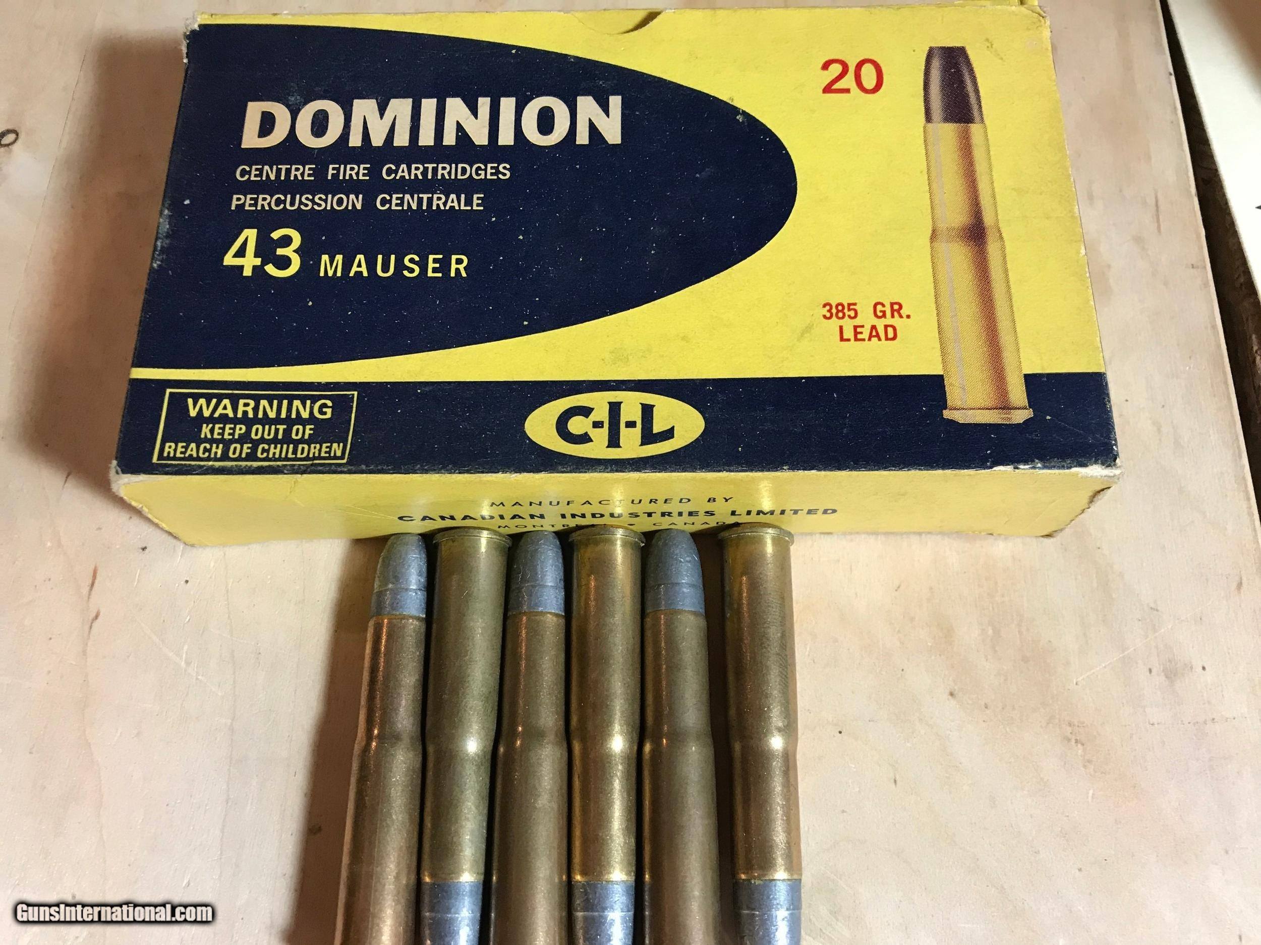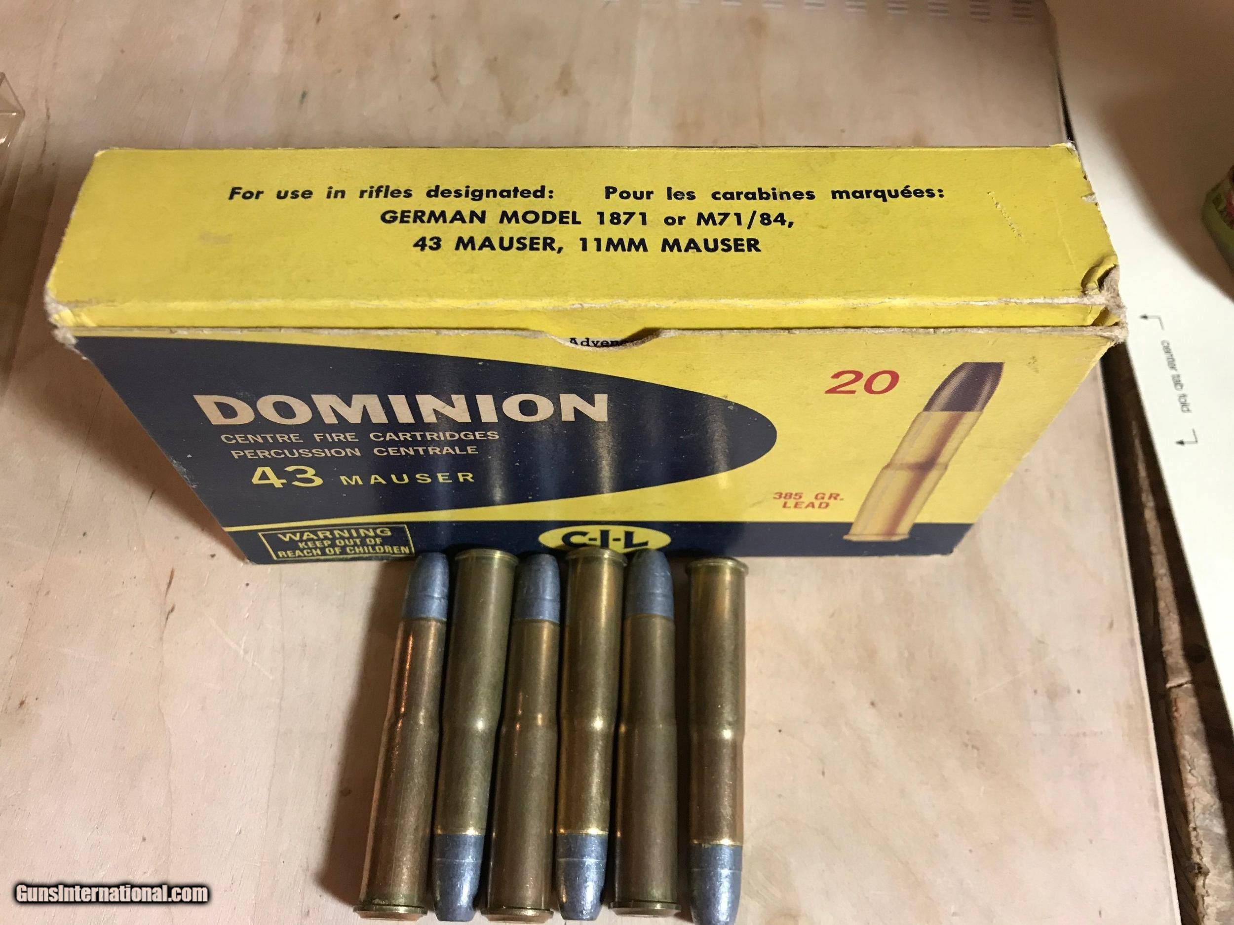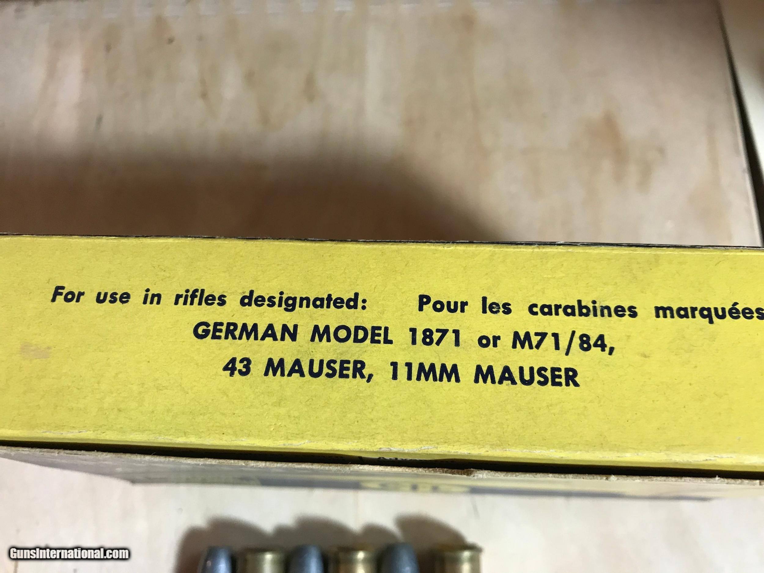 Description: One full and correct box of 43 Mauser plus 6 rounds loose. This ammo is perfect. SOLD |