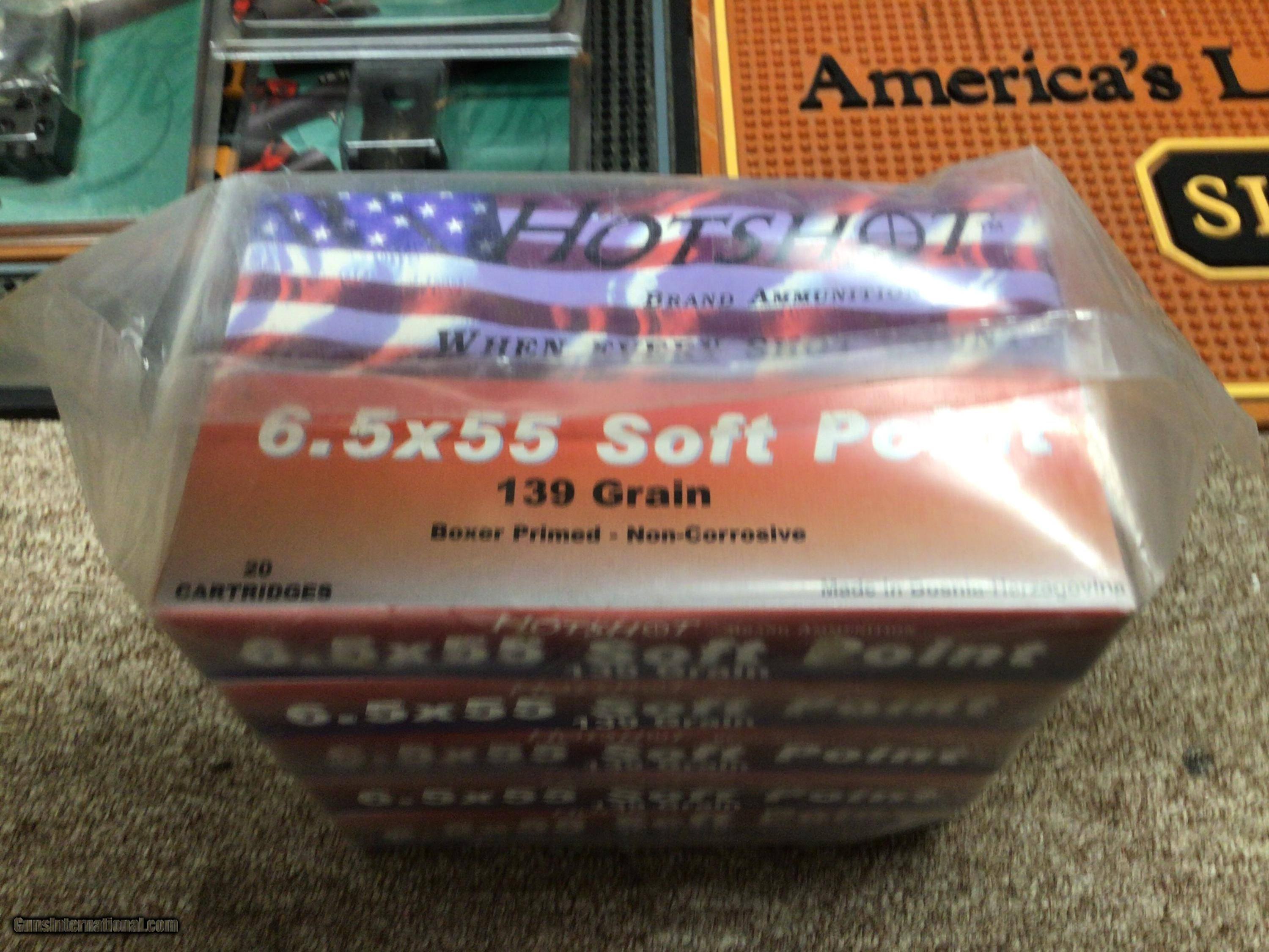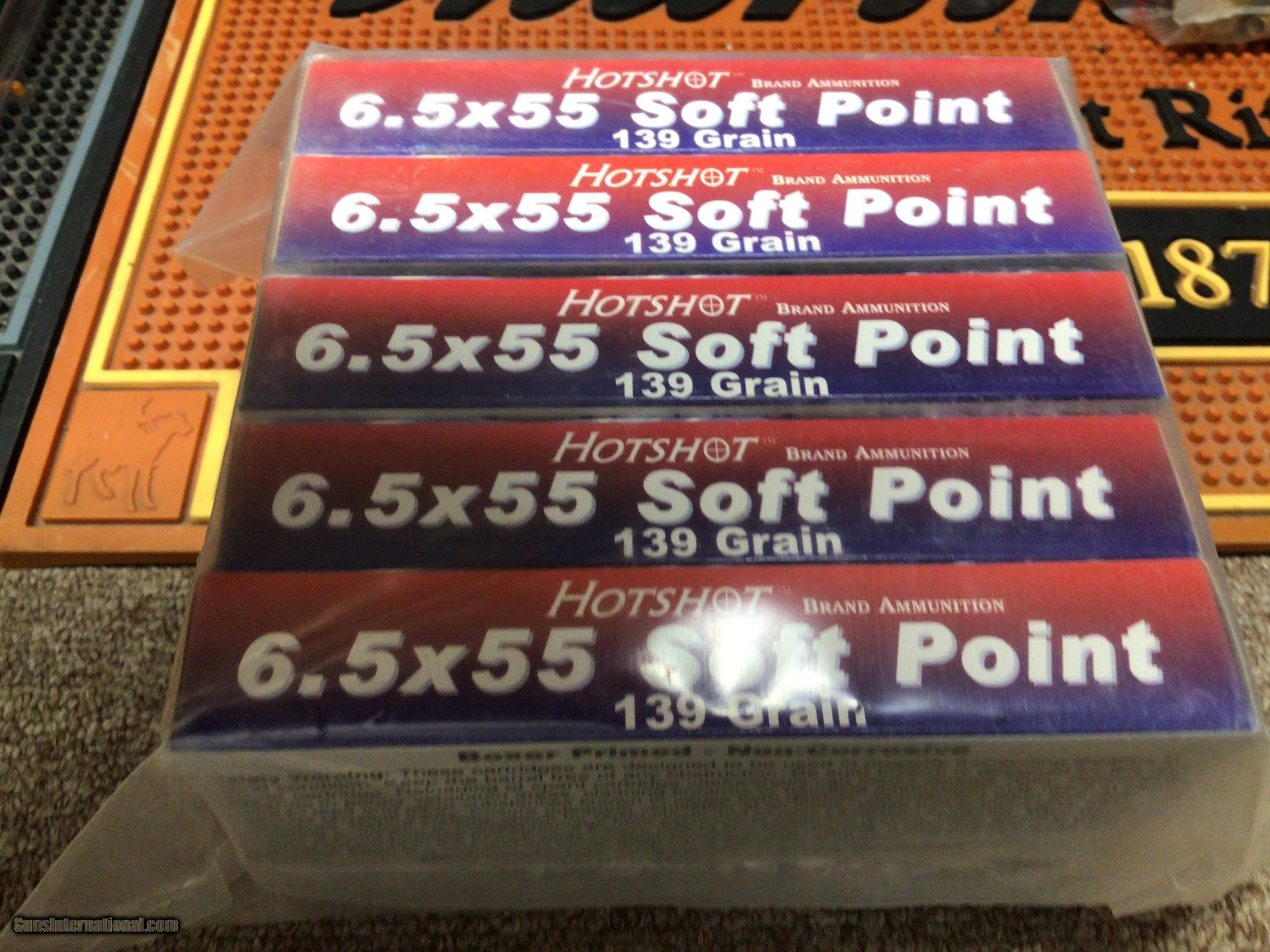 Description: 6.5 x 55 softpoint 139gr 5 boxes nos price is for all 5 boxes SOLD |
