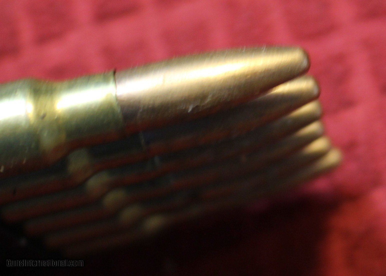 Description: One Box of 50 Cartridges, there are 8 6 round clips and 2 loose rounds. 1939 Military Italian made 7.35x51 Carcano loaded with a FMJ (Full Metal Jacket) projectiles. The box is Interarms who was the importer of the ammunition The ammunition is in six-round steel clips marked SMI and a five-pointed star (Fabrica Armi Terni) followed by 39. The "Star" in the SMI * 39 is part of the SMI marking, who made the clips as well as the ammo. Generally, the clips are clean, the cartridges are mostly clean with a little dust/grime due to the age of the ammunition. (1939) This ammunition is becoming rare and/or collectible because people have been firing it off, stripping them for the Clips for 6.5 Rifles, or breaking up the packets to sell individual clips as "collectible".. If you want to shoot your Model 38, this is just about the only military surplus production era ammo available. This ammo was only made for a little less than THREE YEARS(LATE 1938. TO MID-1940) Just old stock. REAL Old Stock. REALLY, REALLY, REALLY old stock. Dated 1939 on the metal clip. Like 81 years old. This is Vintage Ammo. We are sorting through some 5000 rounds of all kinds of store or shelf stock and under the counter inventory. Some of this has price tags from 1999. Some earlier such as this listing 1939 is the date on this stuff.. So "New Old Stock" fits The exact box you see is the exact box you get This item came from the estate of a FFL/SOT/Gun Smith/Gun store. There will be countless more items listed as time permits. We figure it will take about 4 to 6 years to post the entire store to sell for the estate. This is NOT a liquidation, just selling for the estate. There are no lists and will be no list. Way too much to even try. Please check our other listings for more items as we sort through for the estate. There is about 5000 Rounds of all kinds of shelf or store stock of modern, vintage and unique older ammuntion. Please also check our Webpage and or Facebook page at P&T Partners Shipping is $15 to the lower 48. If you have any questions, you can email or call the number in the ad. Payment is Personal Check, USPS Money Order or Credit Card (BY PHONE ONLY and add 3.5%) NOTE:....... Buyer RESPONSIBILITIES............ Buyer is responsible for knowing if they are eligible to purchase this ammunition based upon their location/age restrictions. Buyer assumes all liability for ammunition and agrees to not misuse it in any manner. Must be 21 years or older to purchase. SHIPPING...... Our shipping days are Tuesday and Friday. All loaded ammunition is shipped UPS Ground. We do not say to avoid any responsibility if you have a PORCH PIRATE problem in your area. You may want to pay extra for Signature at your end. . SOLD |