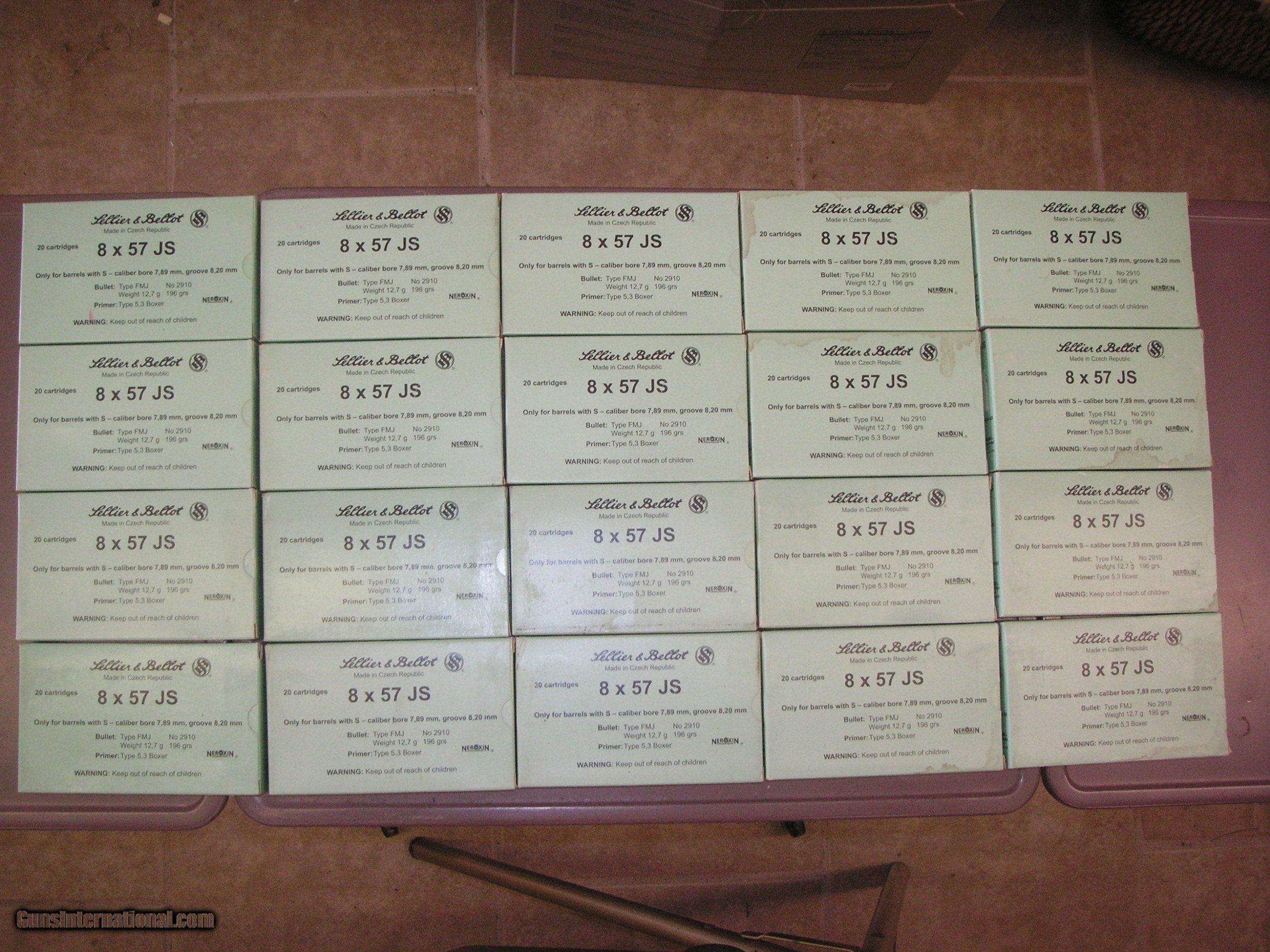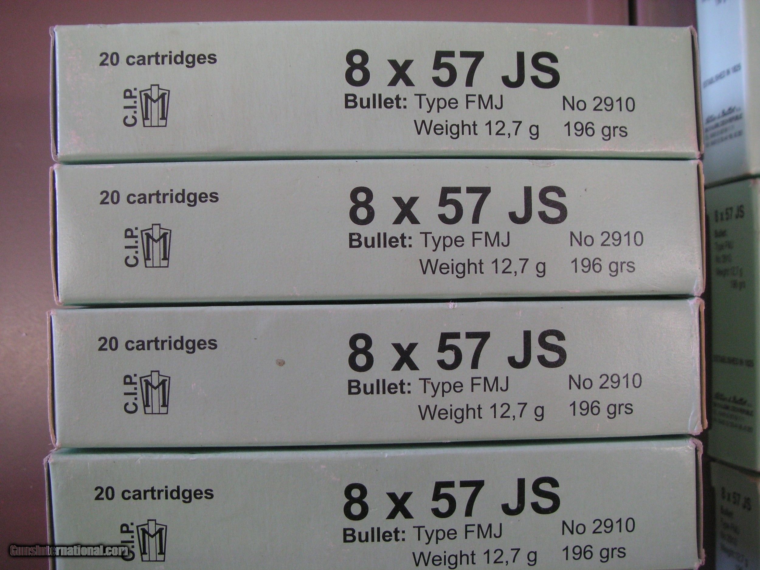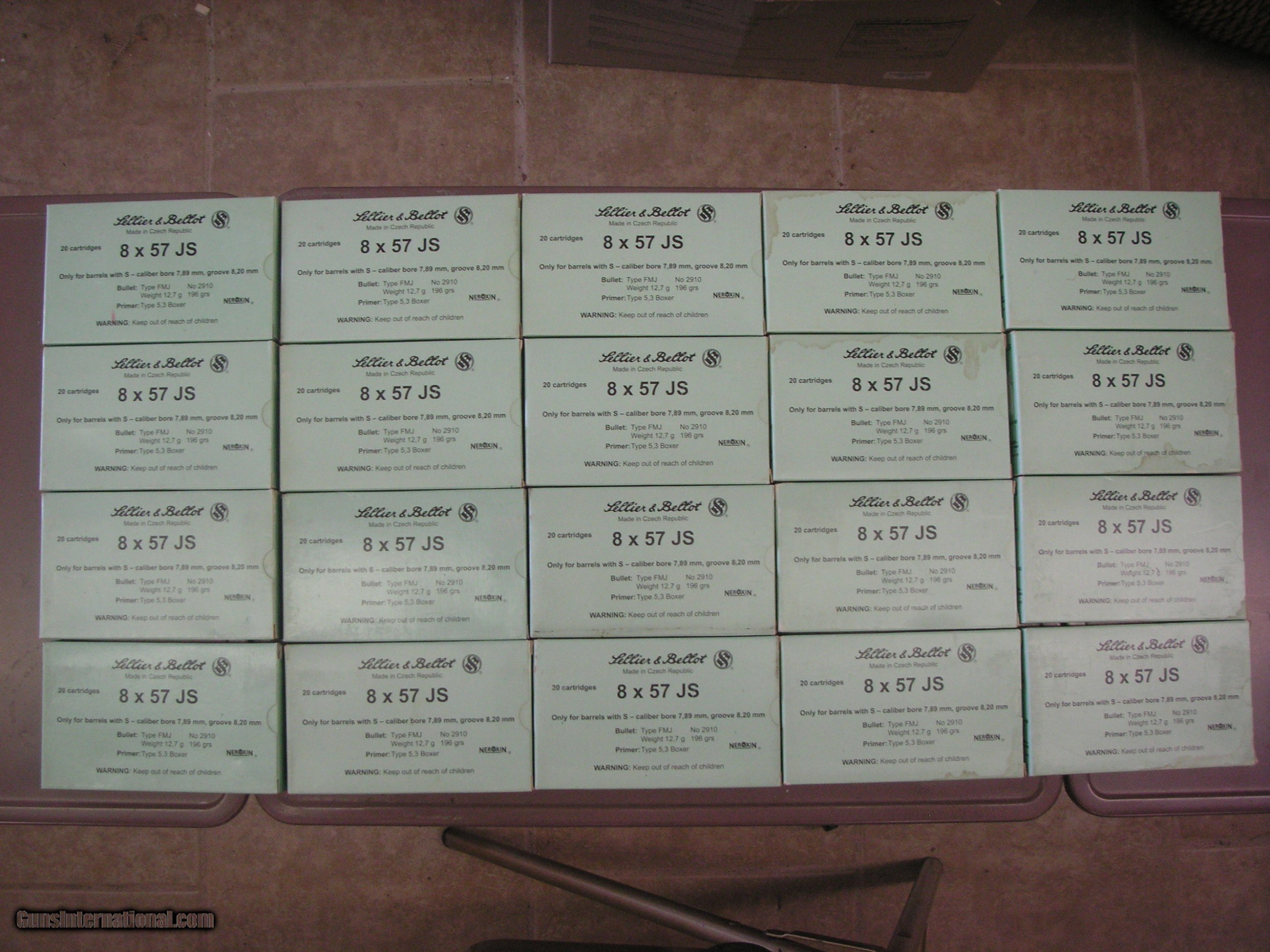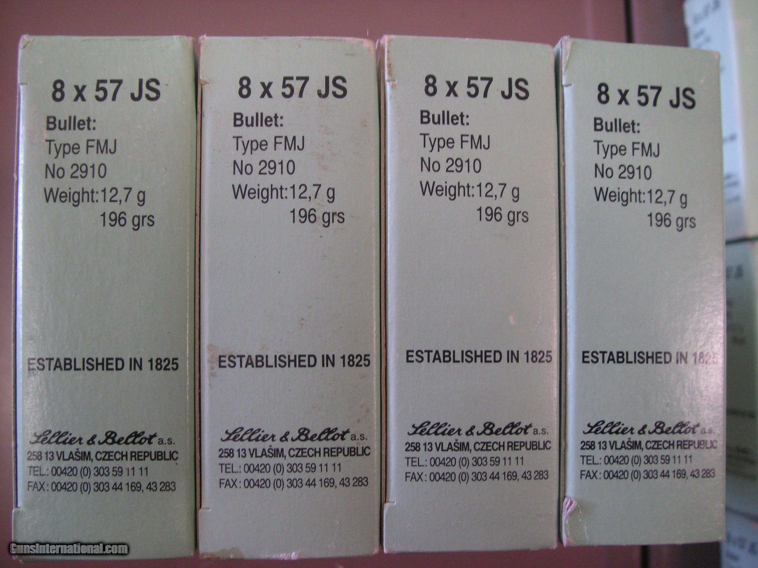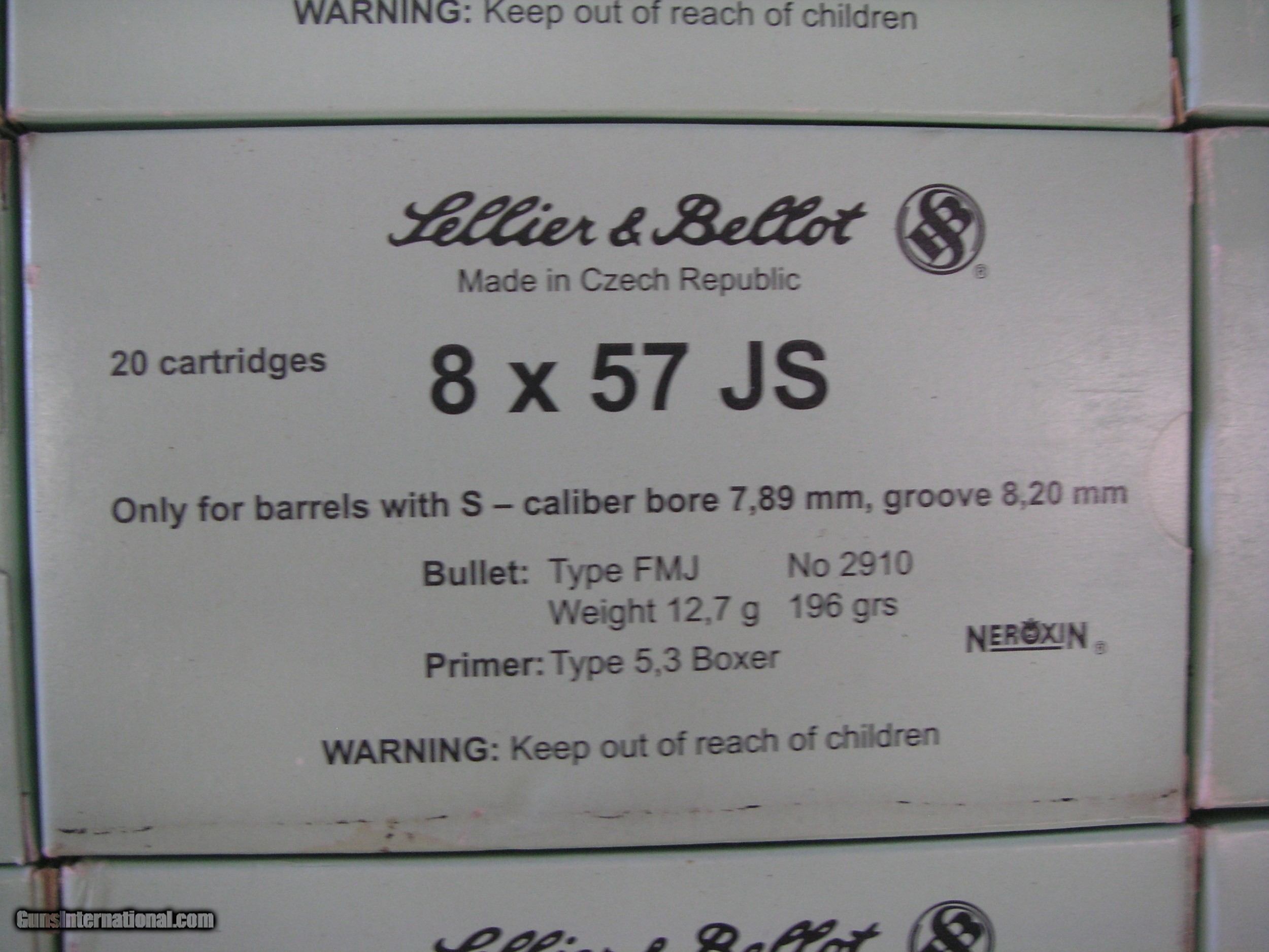 MAUSER 8mm caliber (8x57mm JS) AMMO SELLIER & BELLOT FMJ 196 GR 20 RDS PER BOX