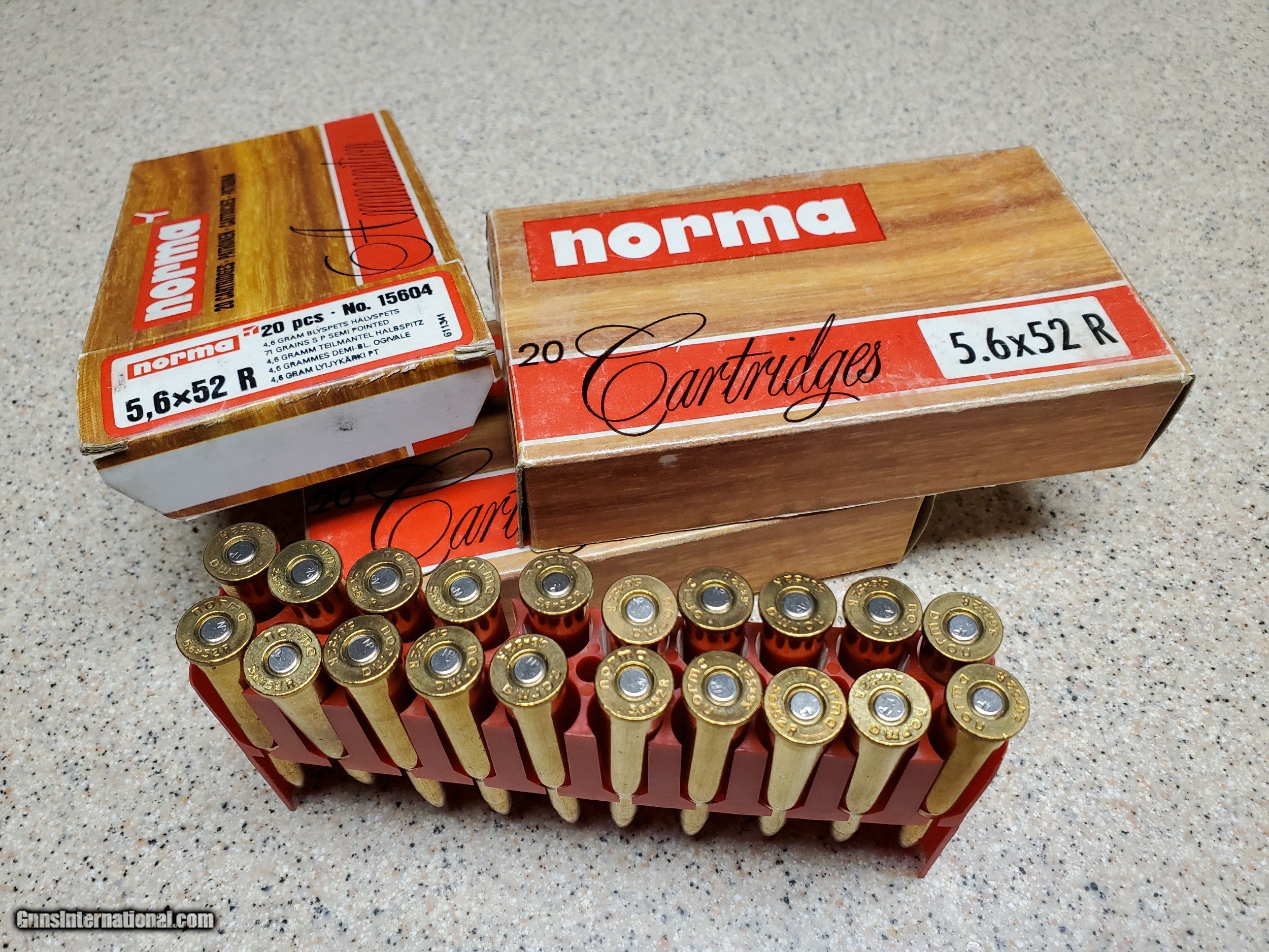 Description: 3 Boxes of new Norma 5.6x52R ammo. SOLD |