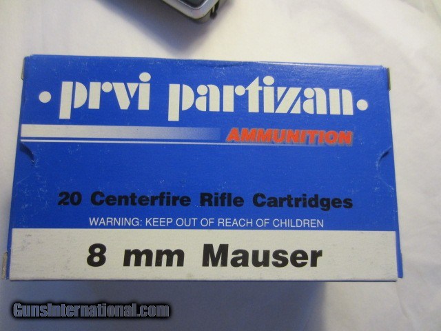 Description: PRVI PARTIZAN 8MM MAUSER 196 GRAIN S.P. TWO BOXES IN STOCK. WANT TO PURCHASE CALL OUR OFFICE 716-941-3946 SOLD |