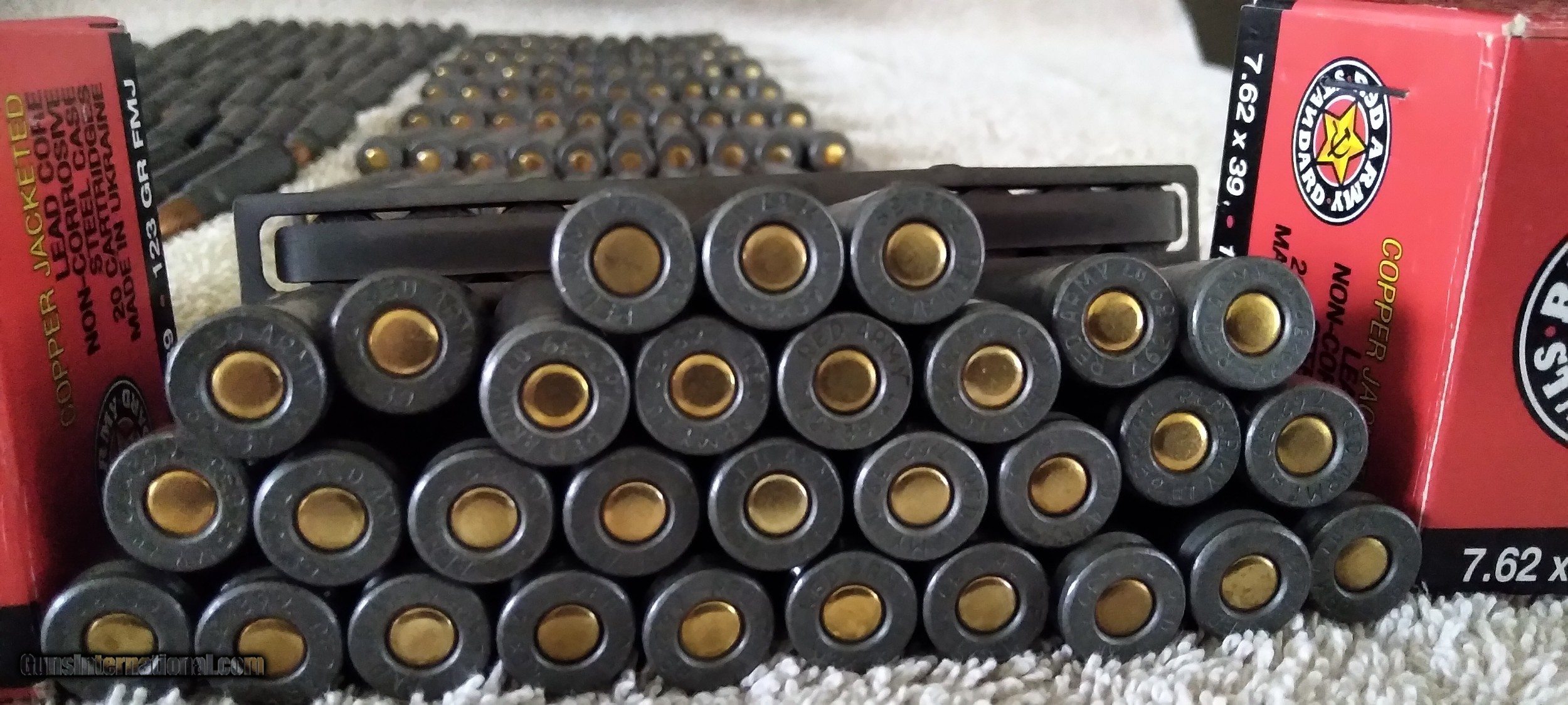 Description: RED ARMY STANDARD 310 ROUNDS FIVE 10 ROUND STRIPPER CLIPS 7.62 x 39mm FMJ 123 GRAIN COPPER JACKETED LEAD CORE NON-CORROSIVE STEEL CASE MADE IN UKRAINE SHIPS DIRECT TO YOU BY UPS GROUND OR BY FED-X GROUND MUST BE 21 YEARS OLD SHIPPING $15.00 SLAVA UKRAINI !!! SOLD Rifle Caliber: 7.62x39mm |