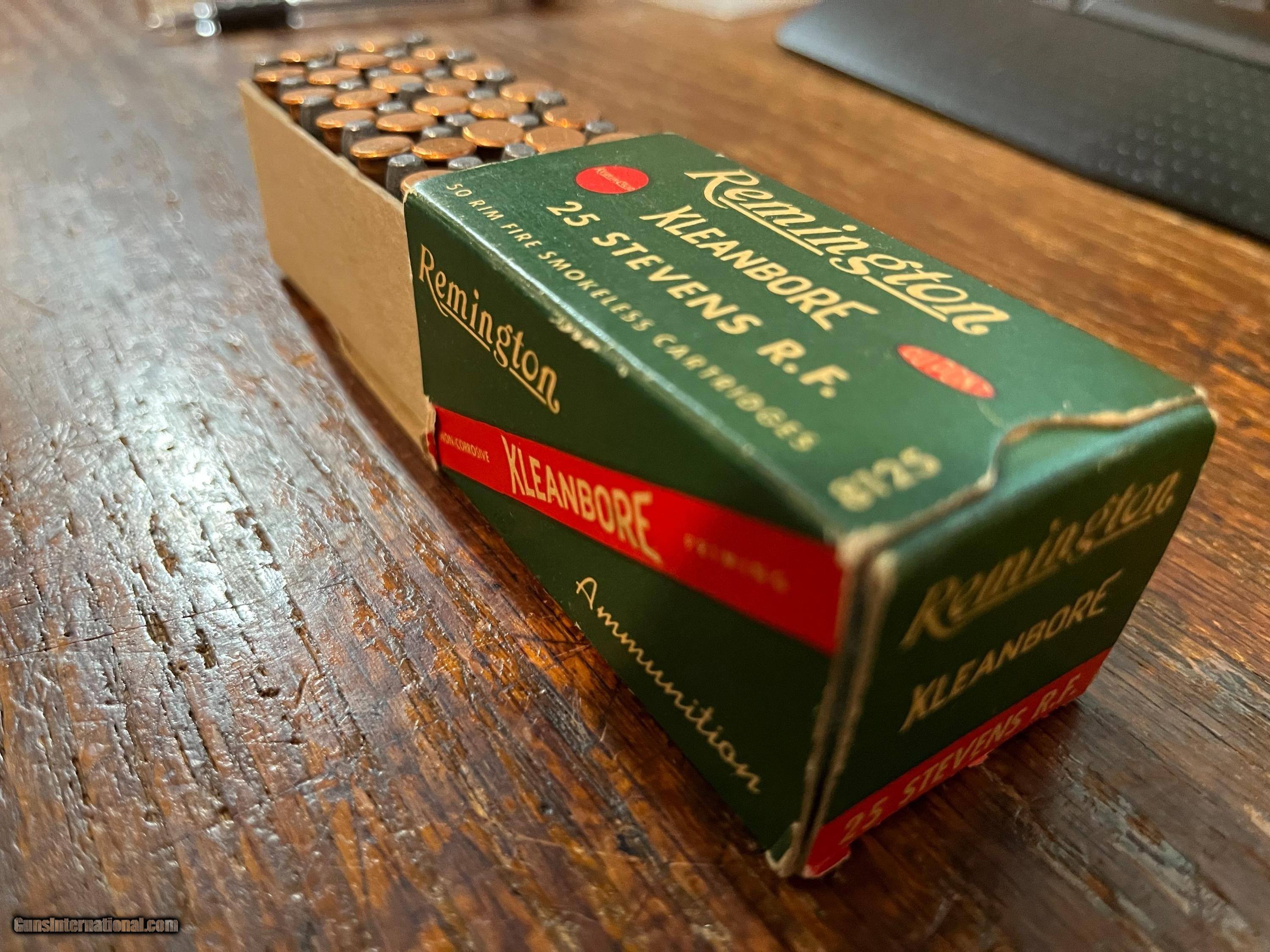 Description: Box of 50 cartridges 25 RF. Clean ammo with intact box. SOLD Rifle Caliber: .25 Stevens |