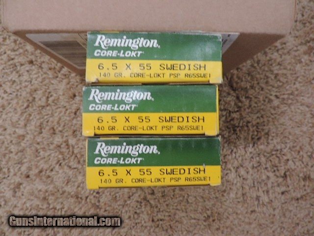 Description: REMINGTON CORE-LOKT 140 GR. PSP, 20RDS / BOX , THREE 3 BOXES, $45.00 / BOX =TOTAL $135.00 FREE SHIPPING NO CREDIT CARD FEES SOLD Rifle Caliber: 6.5x55mm Swedish |