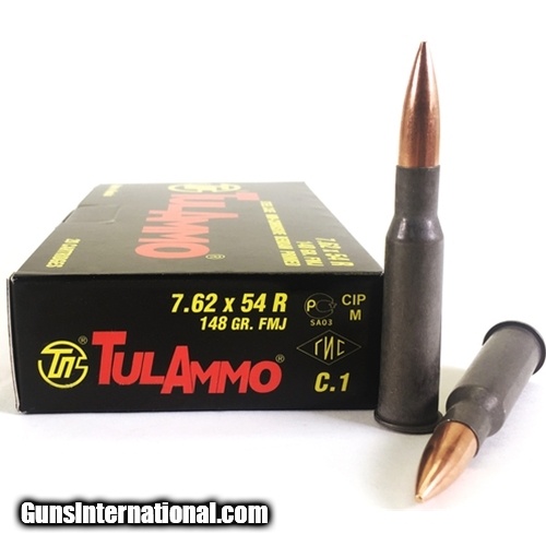 TulAmmo 7.62x54R Ammo 148 grain FMJ Case of 500 Rounds TA762548