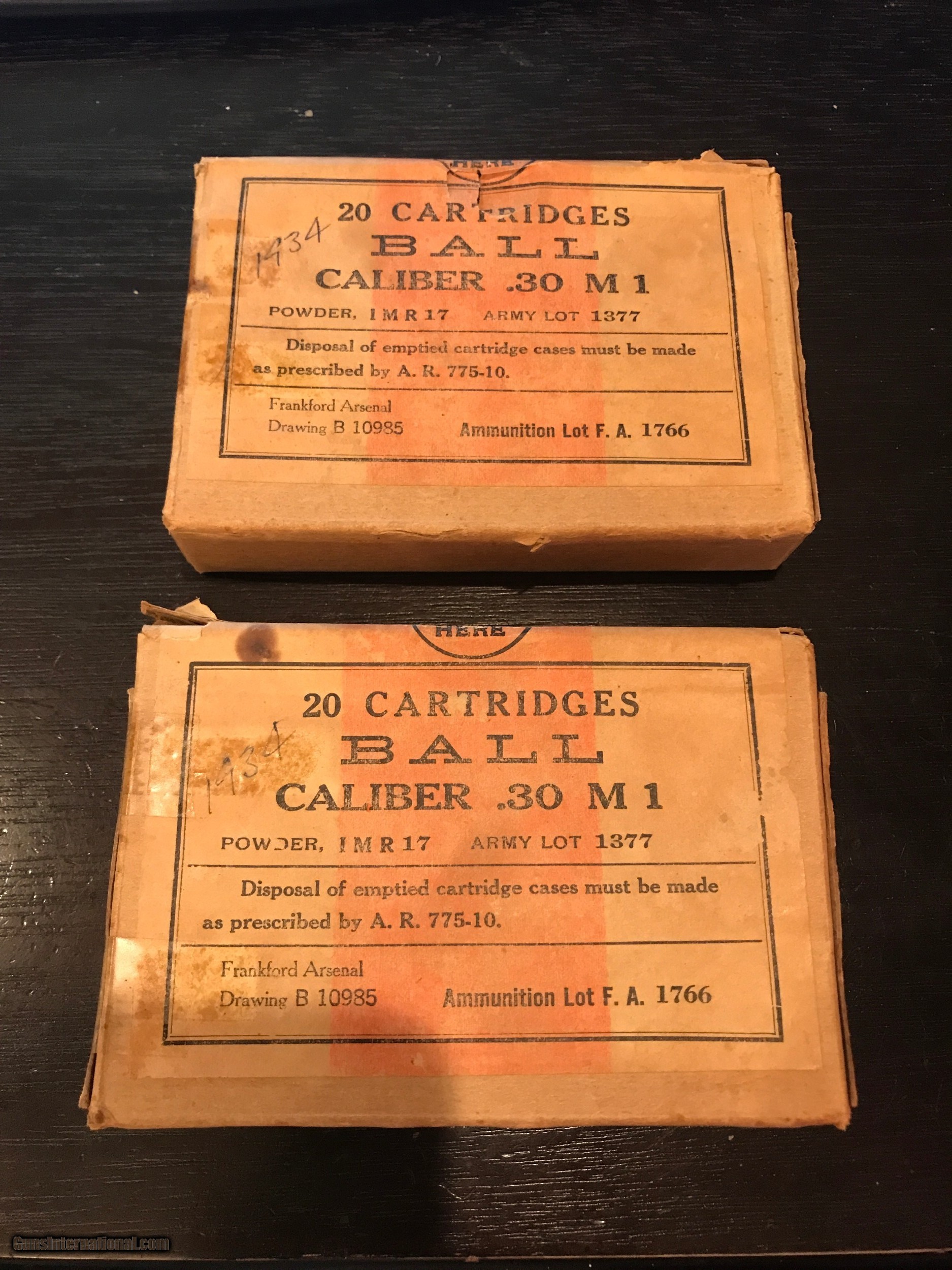 2 Boxes of .30 M1 Ball Ammunition from Frankford Arsenal