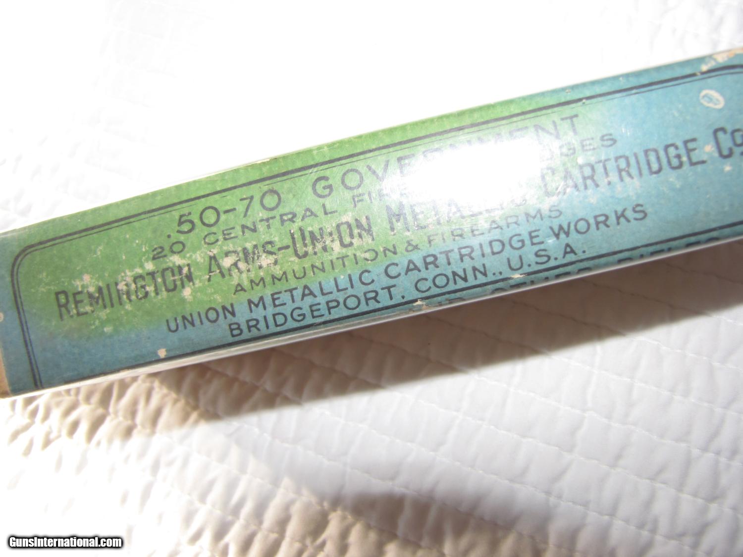 50-70 government ,20 central fire cartridges,Remington arms UMC ,NEW OLD ORIGINAL STOCK in original box plastic wrapped