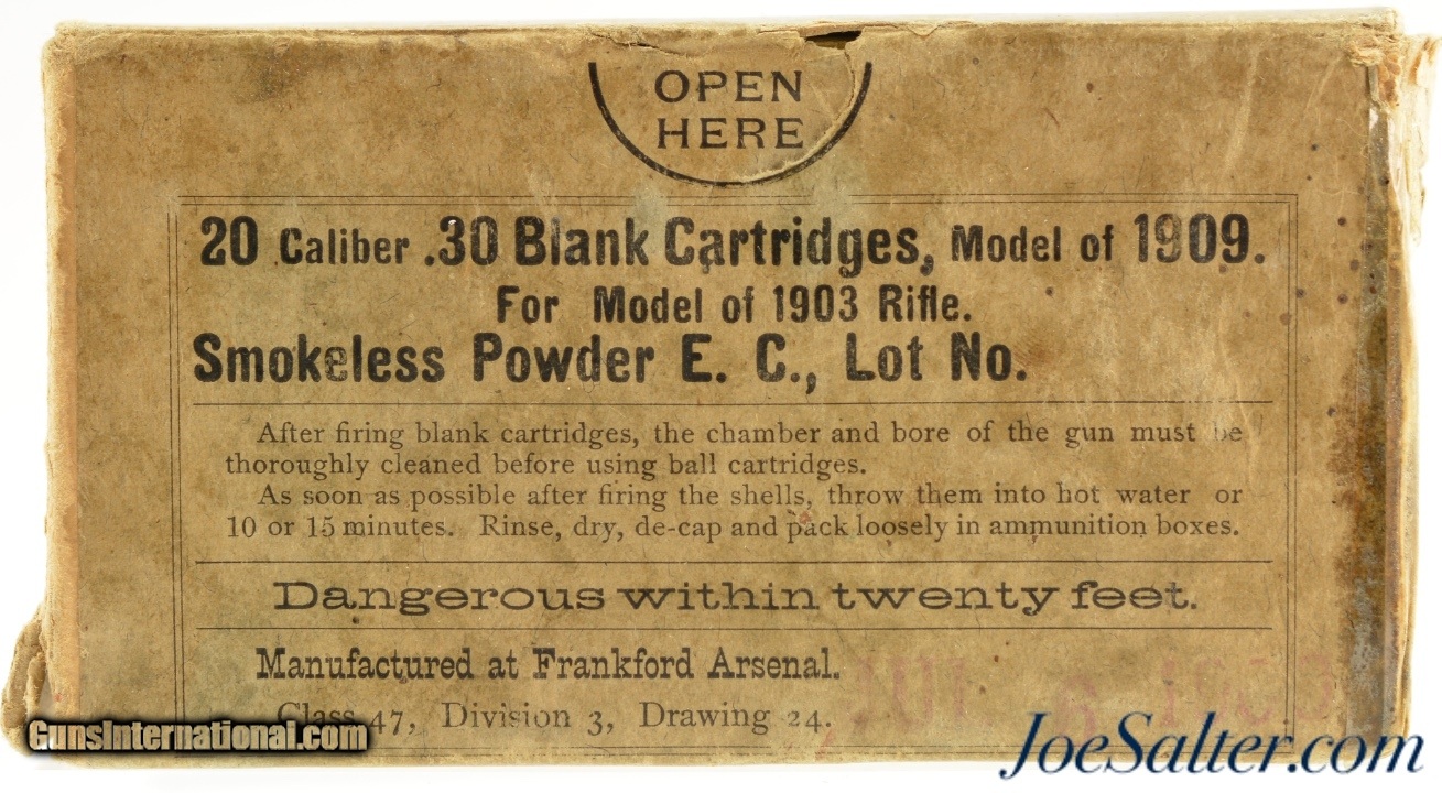 Frankford Arsenal 30 Caliber Blank Cartridges Model 0f 1909 for 1903 Rifle