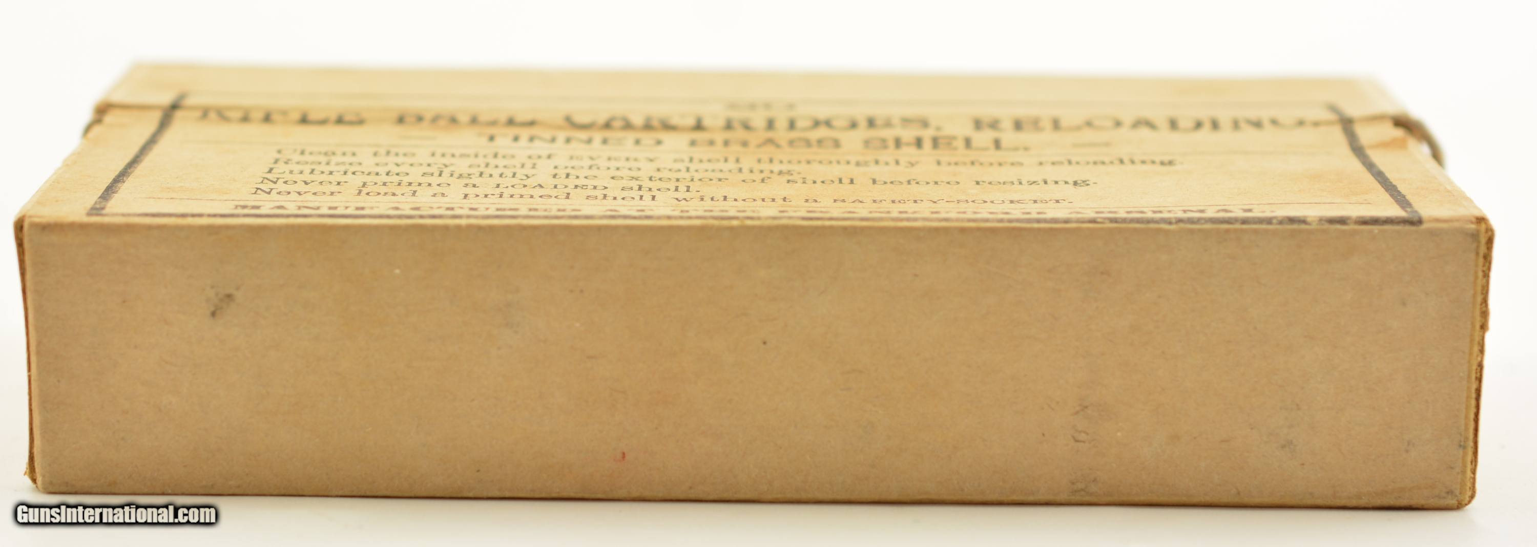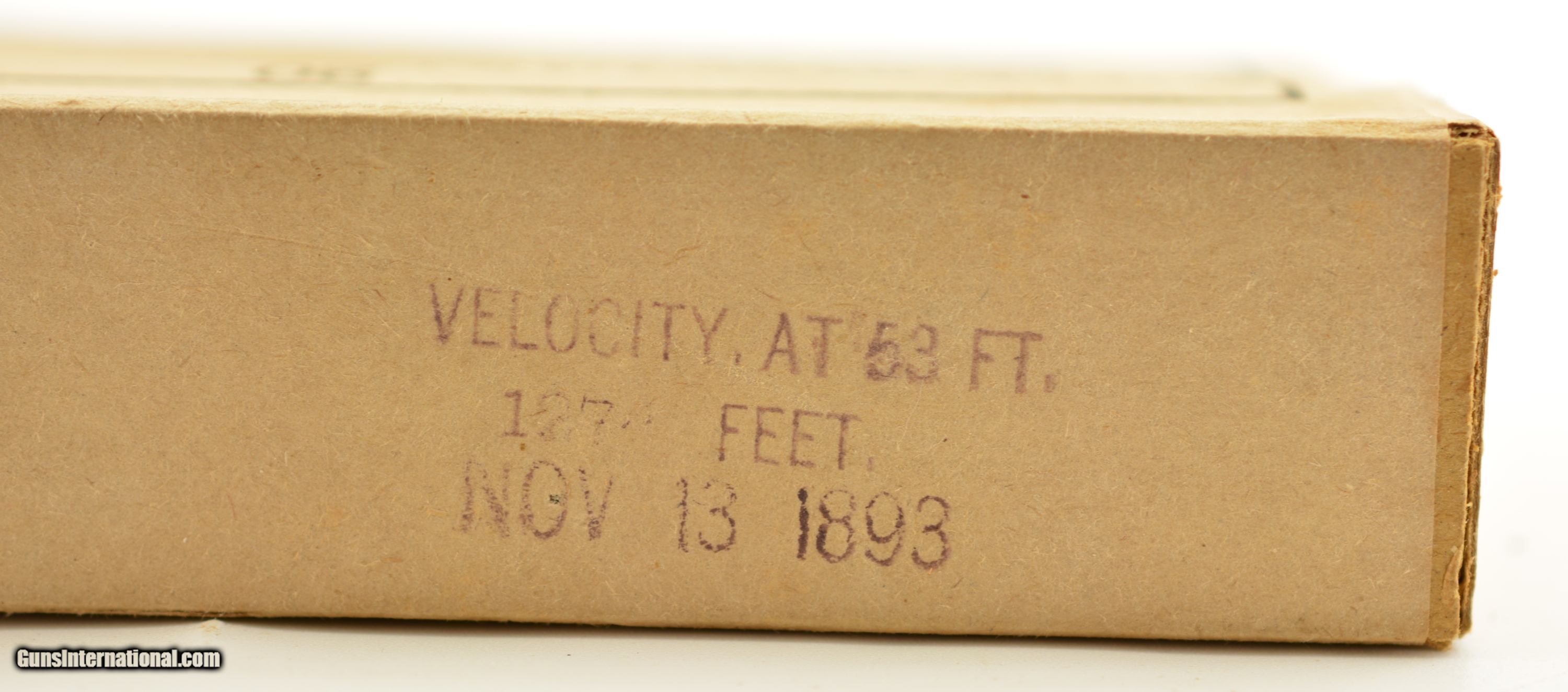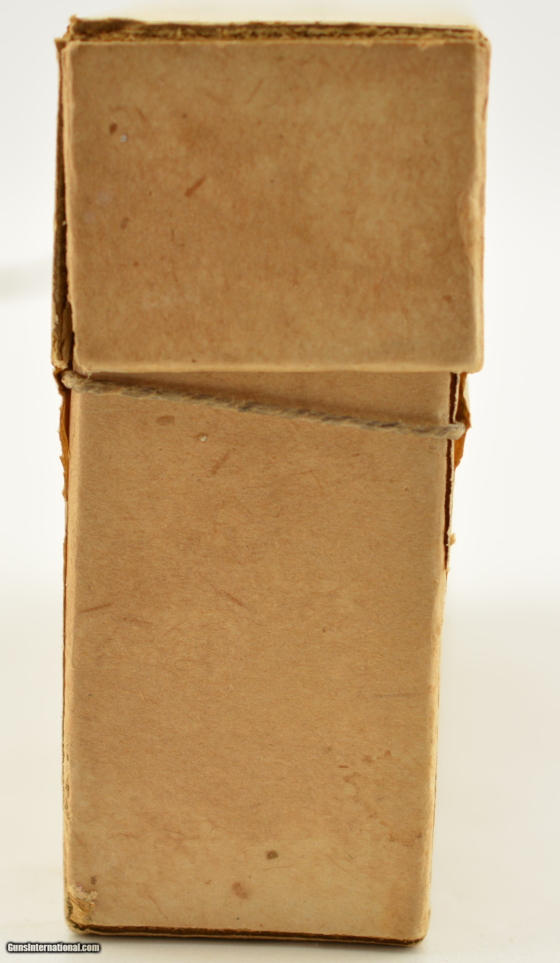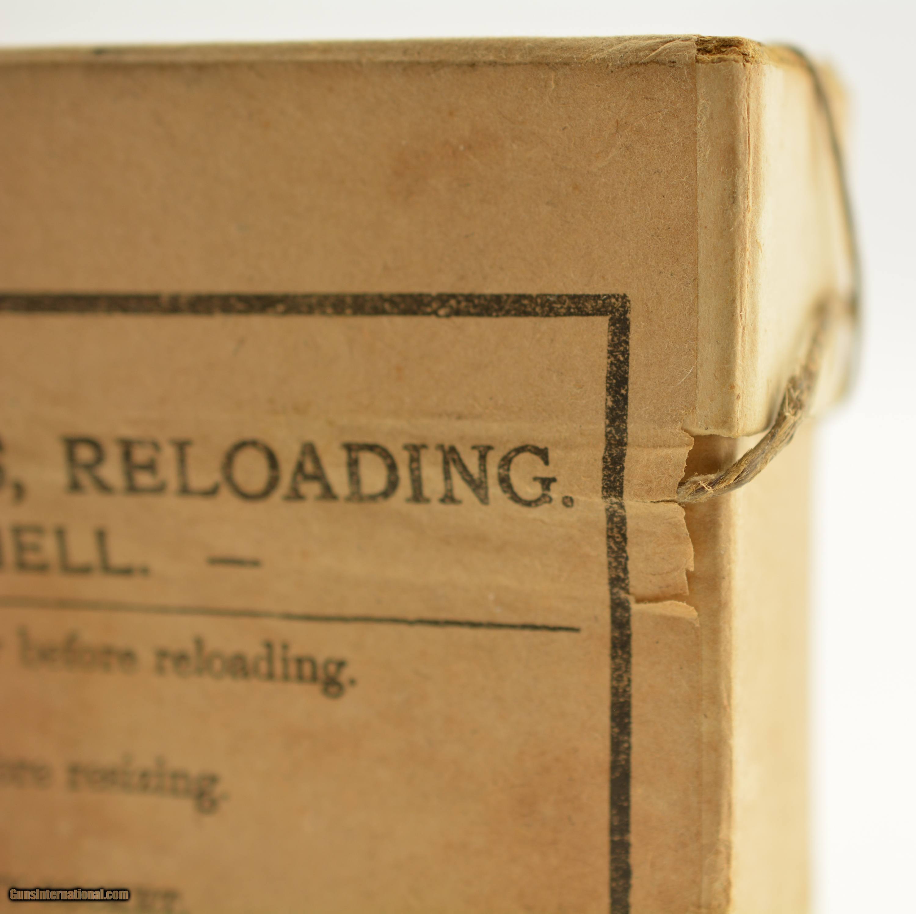 Description: This exceptional unopened box of Frankford Arsenal .45-70 Rifle ammunition is in excellent condition with no signs of handling and only the slightest of soiling. The front label is intact, sharp and clear, with barely a wrinkle across the front. The pull string is present and intact and all of the edges and corners are excellent+. The pull string has not been pulled, and this box has never been opened or dropped. Marked ‘NOV 13 1893’. This is an outstanding example and will make a top rated addition to your collection or fine display pairing for your .45-70 rifle. SOLD Manufacturer: Franford Model: Ammo Caliber Info: .45-70 Gauge Info: .45-70 |
