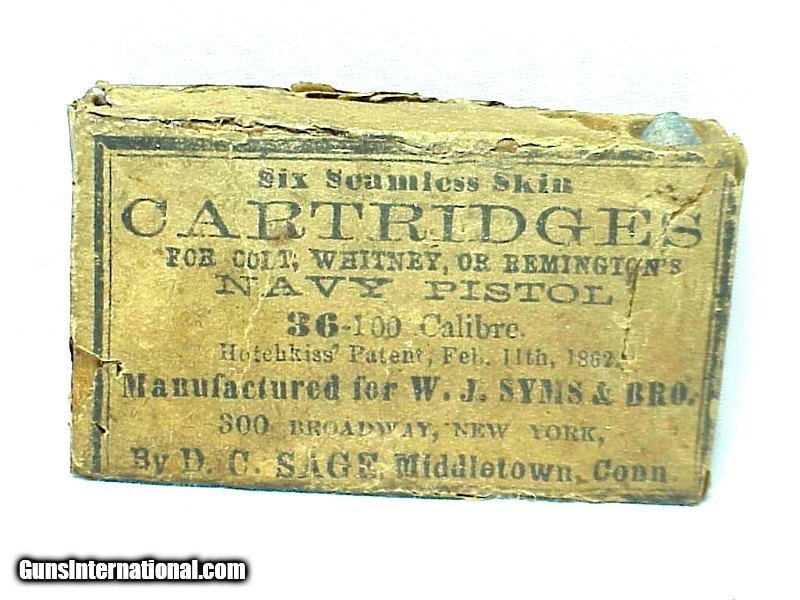 Original .36-100 Cal. Civil War Cartridges for Navy Pistol Pat. 1862 By D.C. Sage