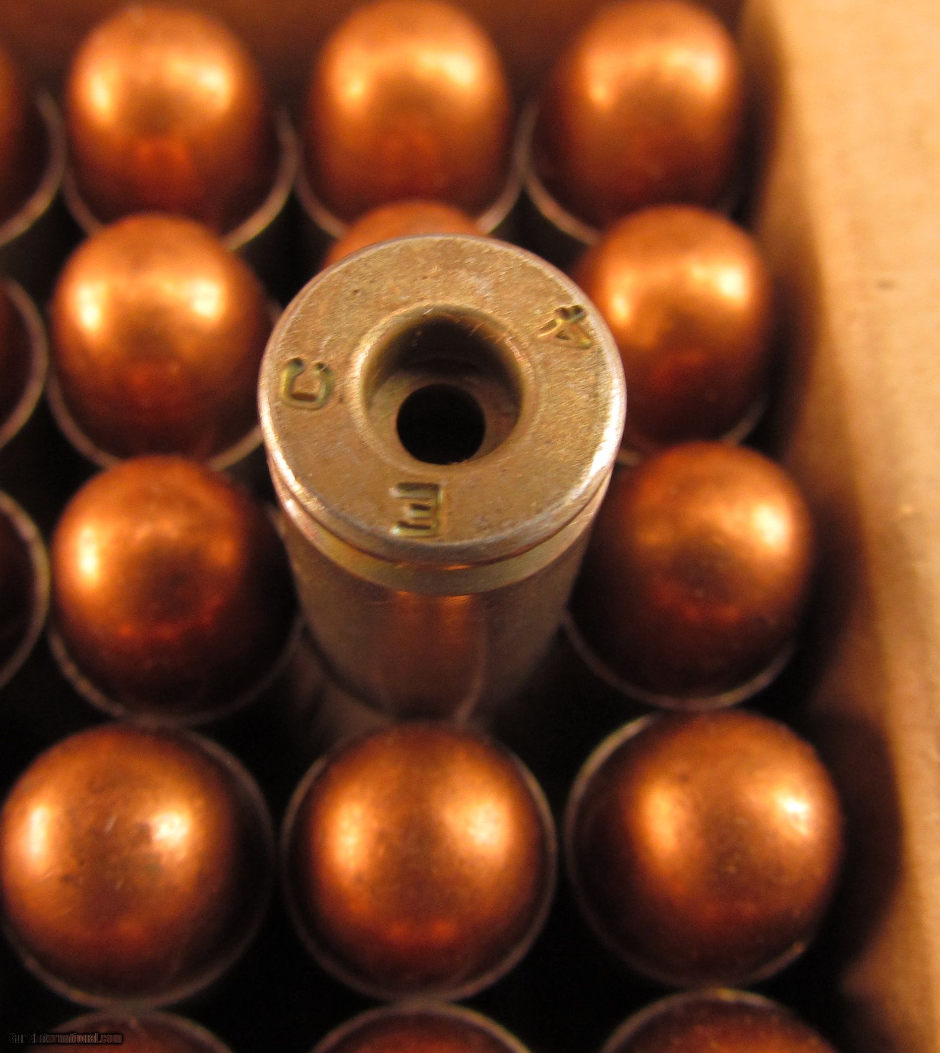 Description: Original US Military 45 Auto dummy cartridges. This box dates to 1944. Steel case 2 drilled holes and empty primer pocket. The head stamp is E C 4 (1944). This scarce box was built at Evansville Ordnance plant. The label indicates 45 M 1921 which was the designation for the Dummy cartridges. This box contains all of its' original dummy cartridges that remain in excellent plus condition to find a complete WWII Box is not an easy task. The survival rate of these appears to be very low. This item fits in with various collections. SOLD Manufacturer: Evansville Model: Ammo Caliber Info: .45 ACP Gauge Info: .45 ACP |