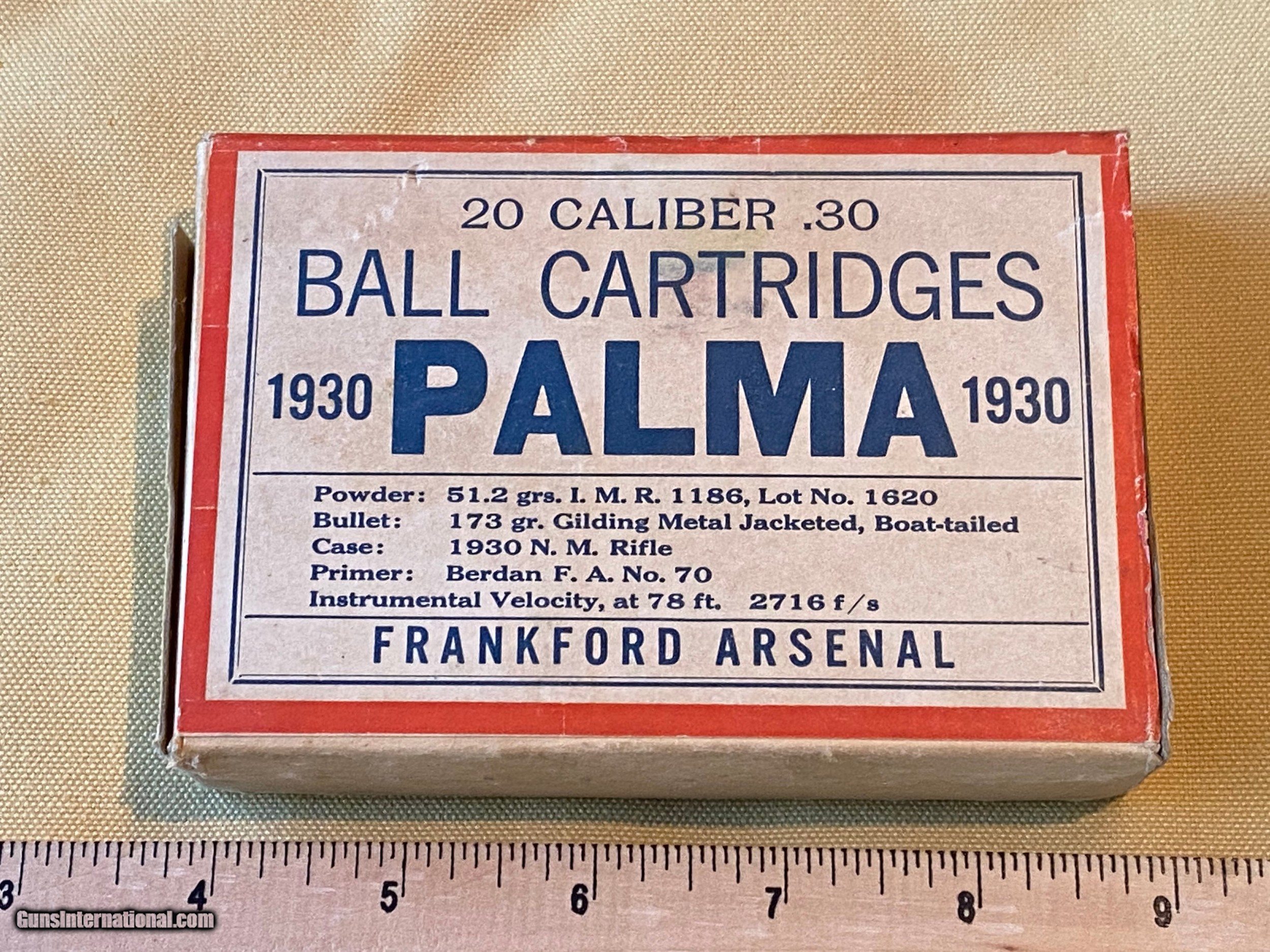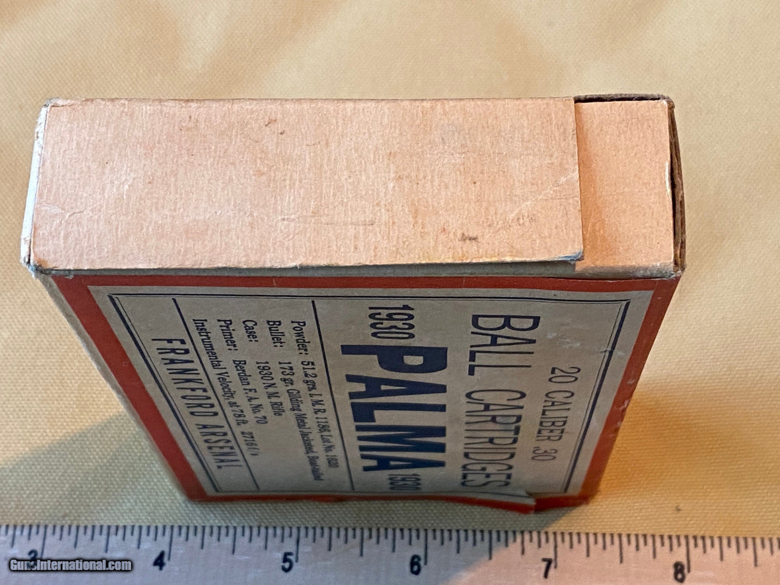 Sealed Box Frankfort Arsenal 1930 Palma Match .30 Ball Cartridges