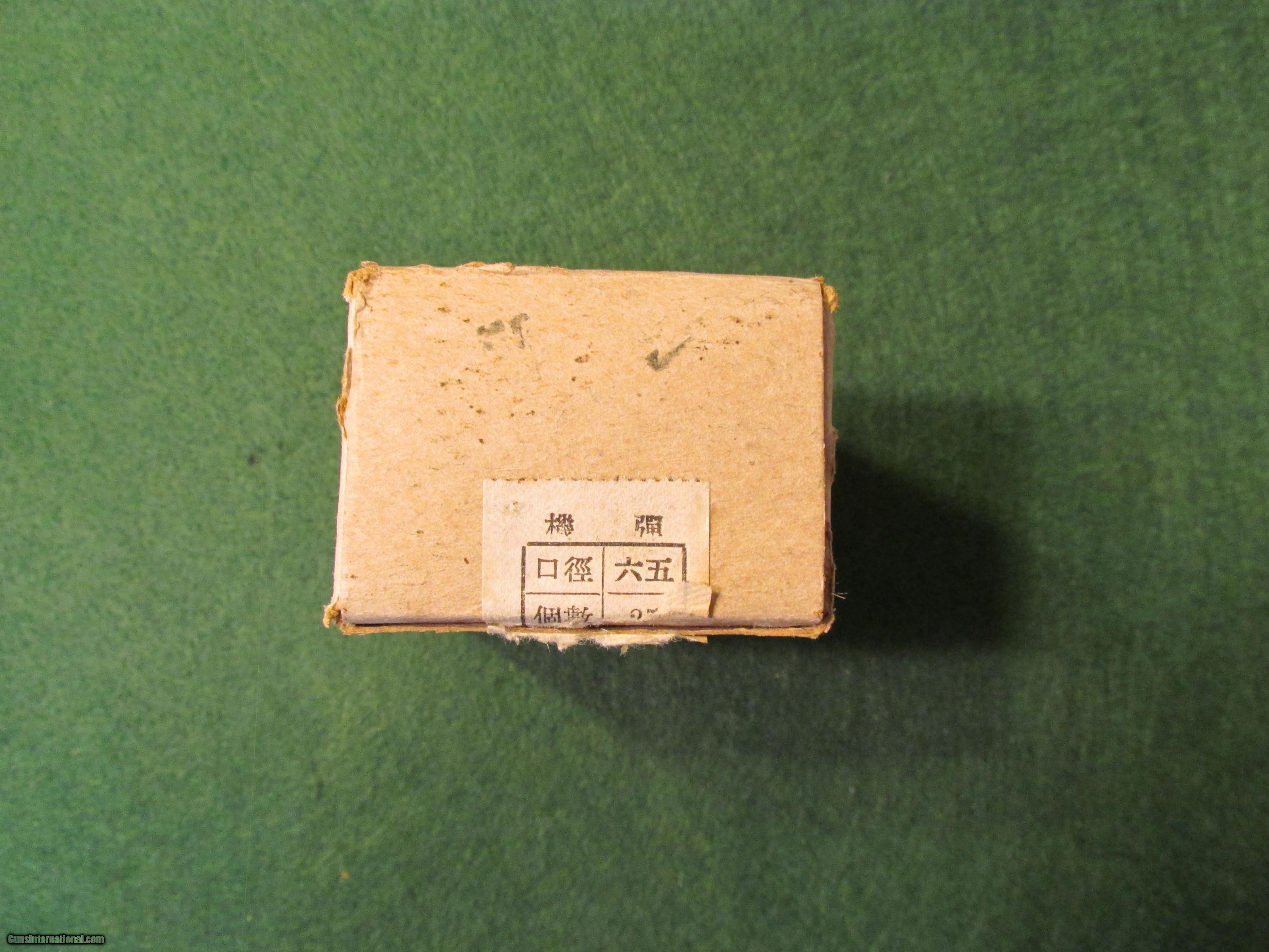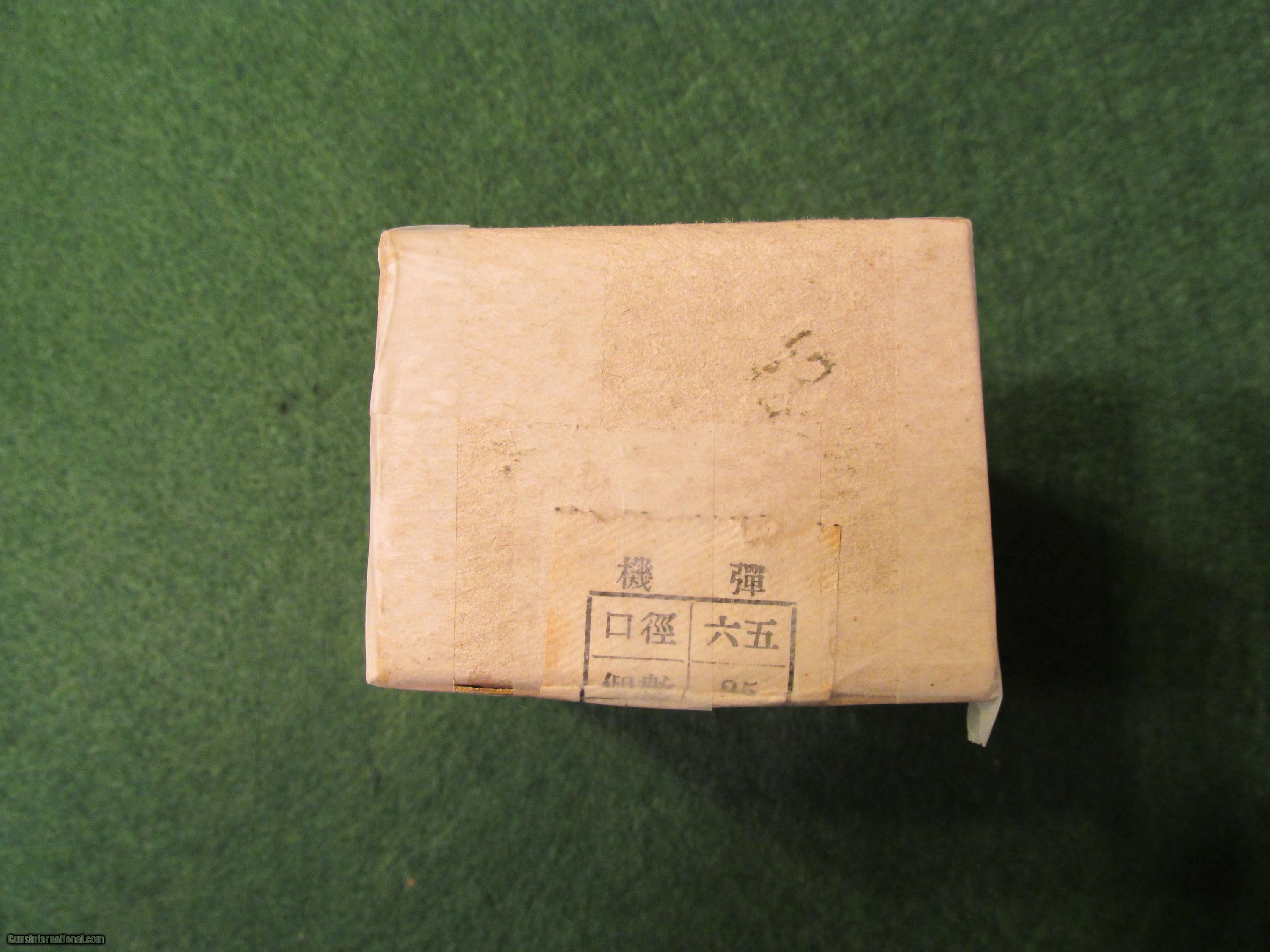 Description: Two boxes of Communist Chinese produced 6.5x50mm ammunition. One open box and one unopened. 25 rounds in each box. Cartridges are bright and shinny. Labels on boxes are starting to fade, both boxes are sound. Korean war vintage. Another interesting flavor of 6.5X50mm SR ammunition. A great addition to any collection. Buyer pays actual shipping UPS ground. Must have proof of age. Will not ship outside lower 48. SOLD |