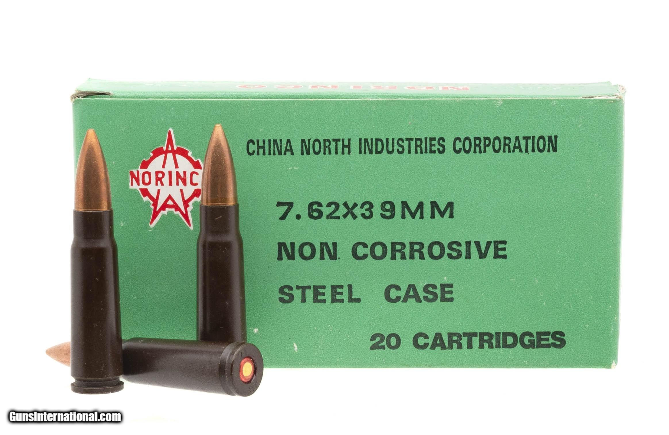 Description: "Complete box of 20 rounds of 7.62x39 Norinco steel core. SOLD |