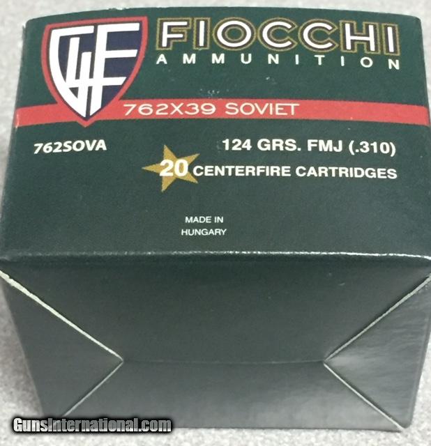 Description: Fiocchi Ammunition 7.62 X 39 Soviet 124gr FMJ (.310) Brass Cased Reloadable Ammunition Product #762SOVA Case of 1000 Rounds (50) 20 round boxes Special Case Price $475.00 Plus Shipping Regularly $595.00 SOLD |