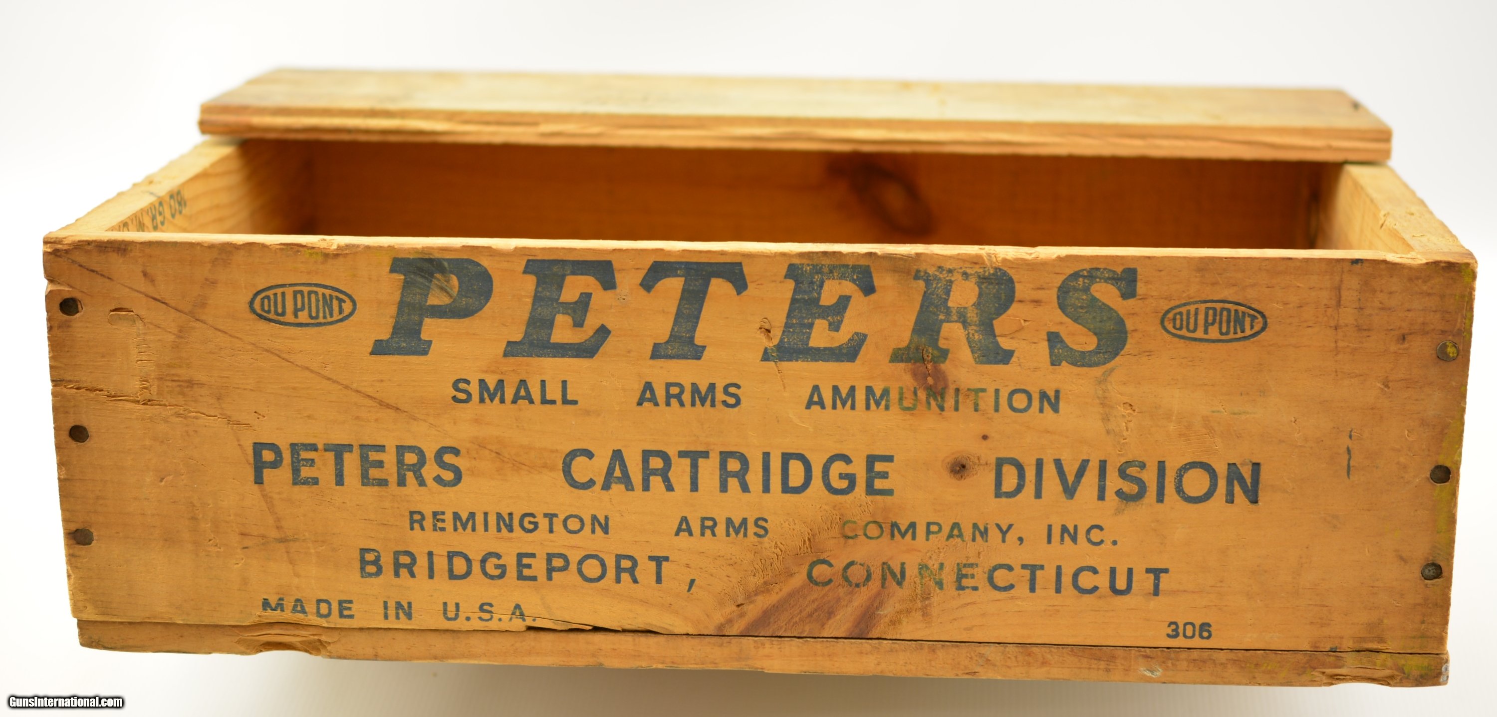 Description: A Unique U.S.M.C. ammunition lot. This lot consists of 6 our of the case boxes of Peters Rustless 30-06 ball cartridges. Both the boxes and the cartridges rate as excellent. These Peters boxes were in use from 1950 to 1962.- Head stamped Peters 30-06. The bullet is a 180 gr metal case tapered heel #3079. Reach box is ink stamped with a lot #26001 as is the original wood case. The original case remains in excellent condition with the normal Peters markings. One end shows and old stapled label from the U.S. Marine Cor traffic branch, Albany GA to the receiving officer, supply Dept of the Marine Cor Scol Quantico VA The other end shows the ink stamped lot #. SOLD Manufacturer: Peters Model: Ammo Caliber Info: .30-06 Gauge Info: .30-06 |