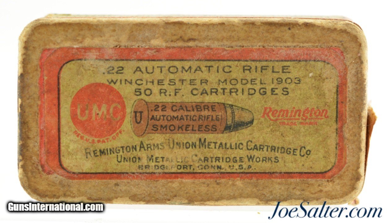 1911 Split Logo Issue Remington UMC 22 Win Auto Model 1903 Ammo Full Box