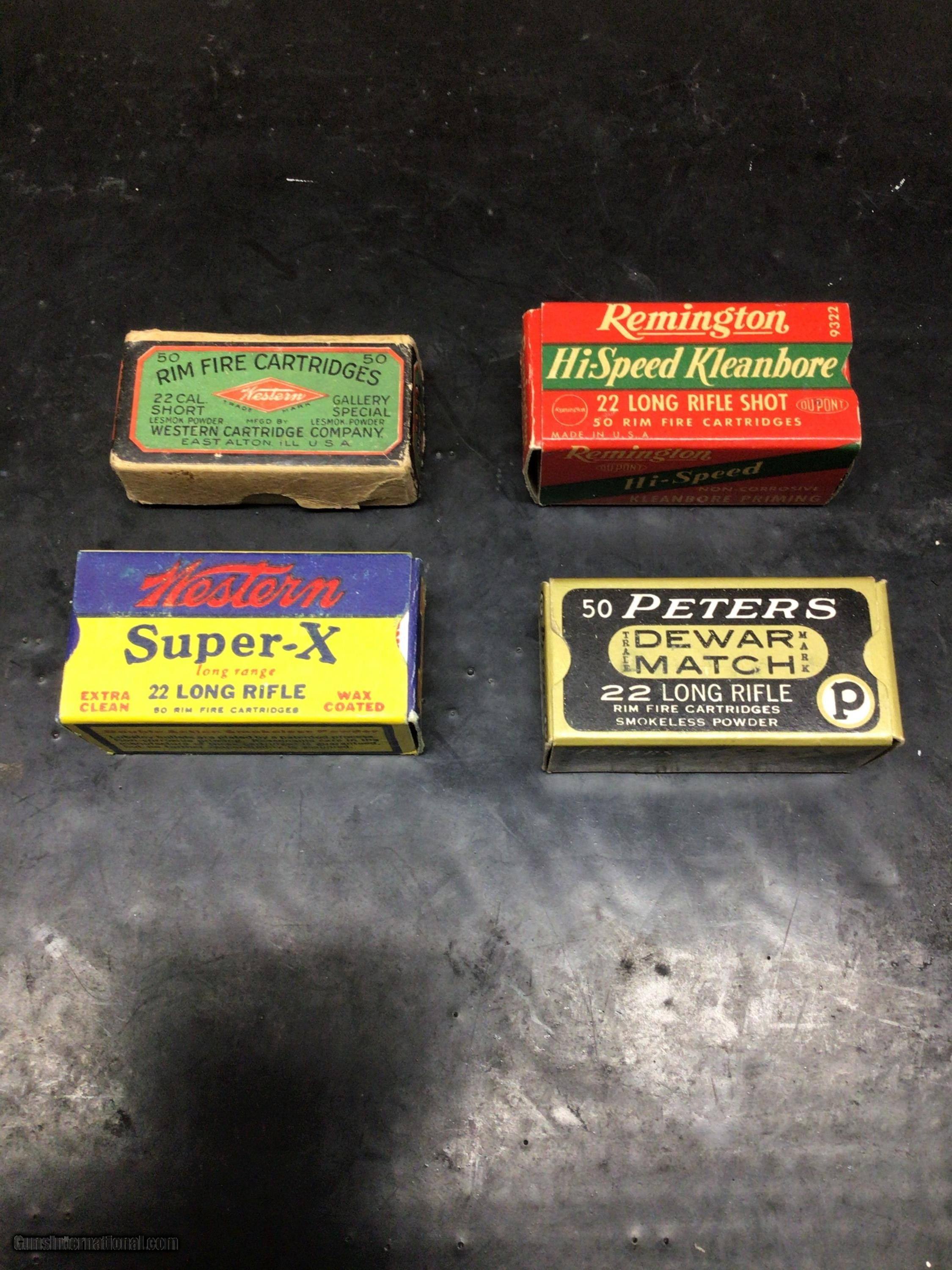 Description: 4 full boxes of assorted 22 bullets in very good to excellent condition SOLD |