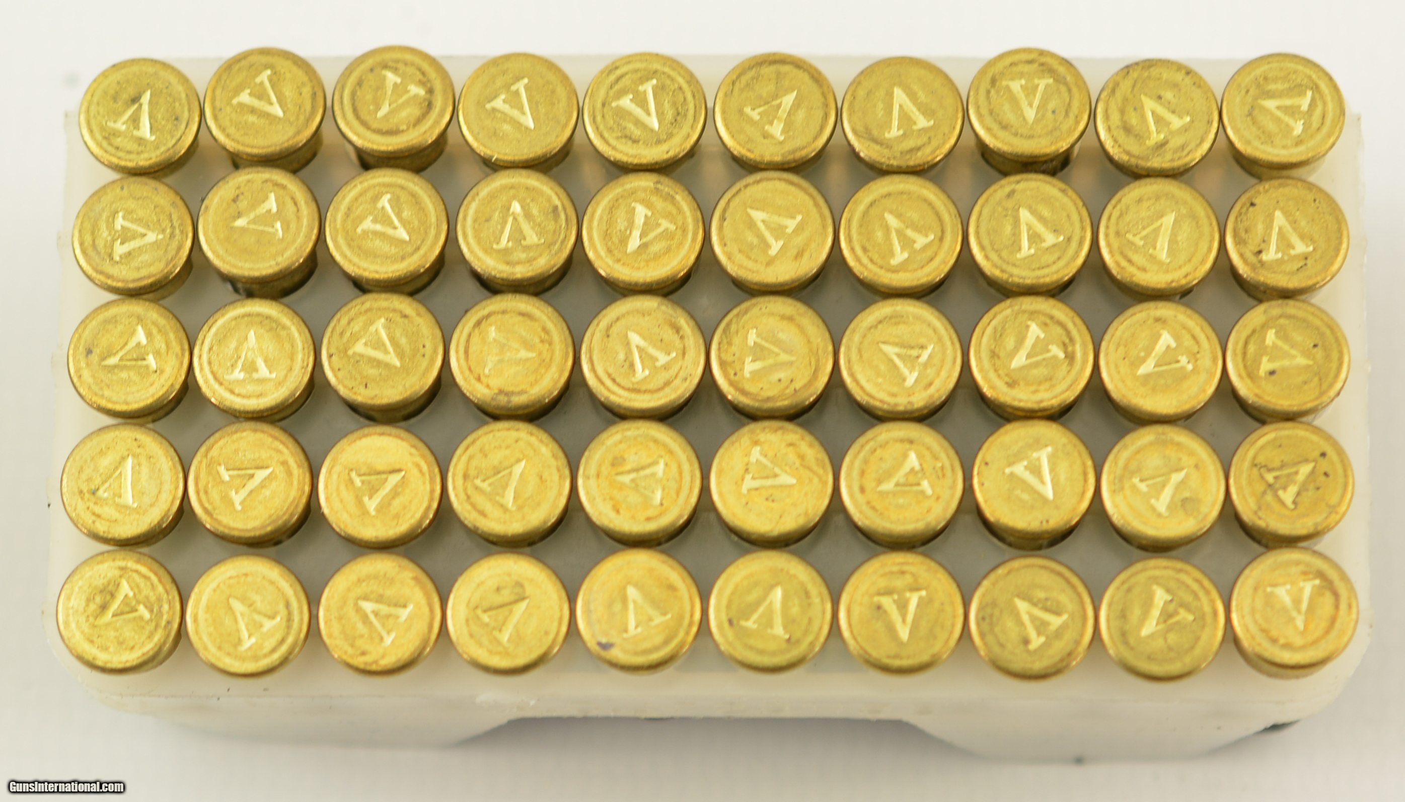 Description: This full 50 round box is marked "made in USSR" on bottom with English warnings and descriptions , front label shows "5.6 mm (.22) long rifle" as caliber description . This box is not listed in Dunn upgrades. Box contains a plastic tray with lead round nose bullets in brass cases with "V" headstamp. SOLD Manufacturer: Baikal Model: Ammo Caliber Info: .22LR Gauge Info: .22LR |