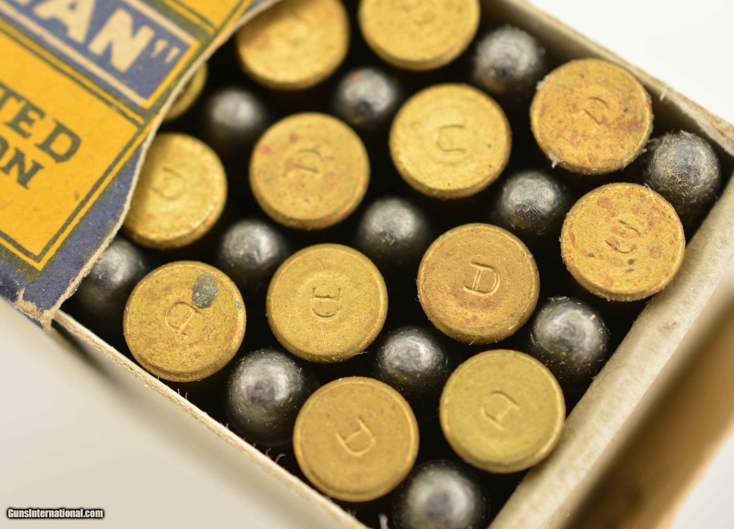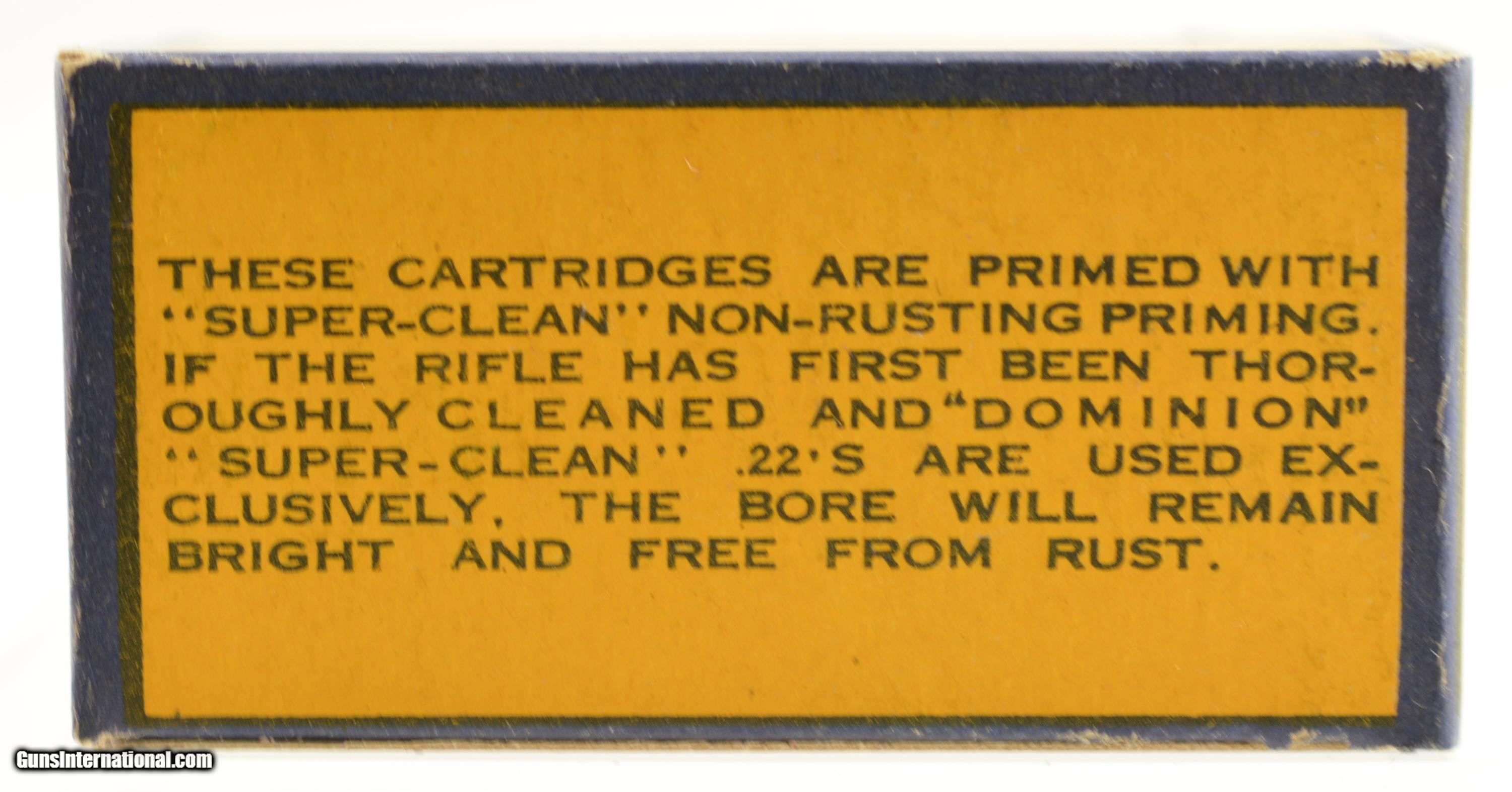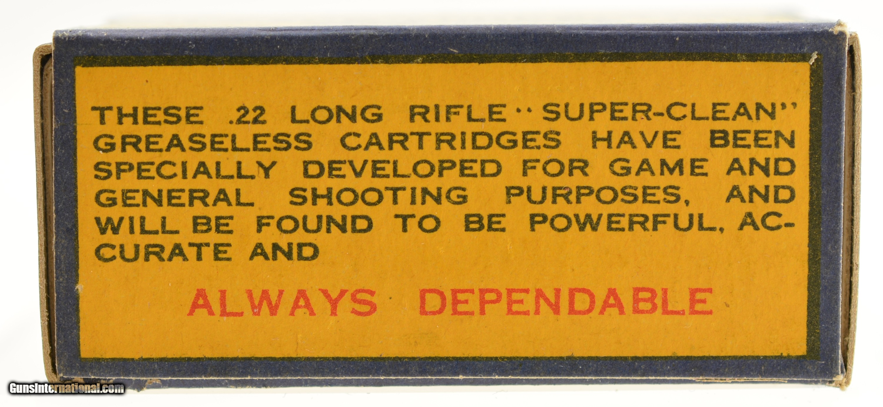 Description: This is the golden background variation of the 1945-50 "Dry lubricated bullets" one piece box. Listed in Blyth +Dunn as CIL-4-LR-19. This box remains in new condition. SOLD Manufacturer: CIL Model: Ammo Caliber Info: .22LR Gauge Info: .22LR |