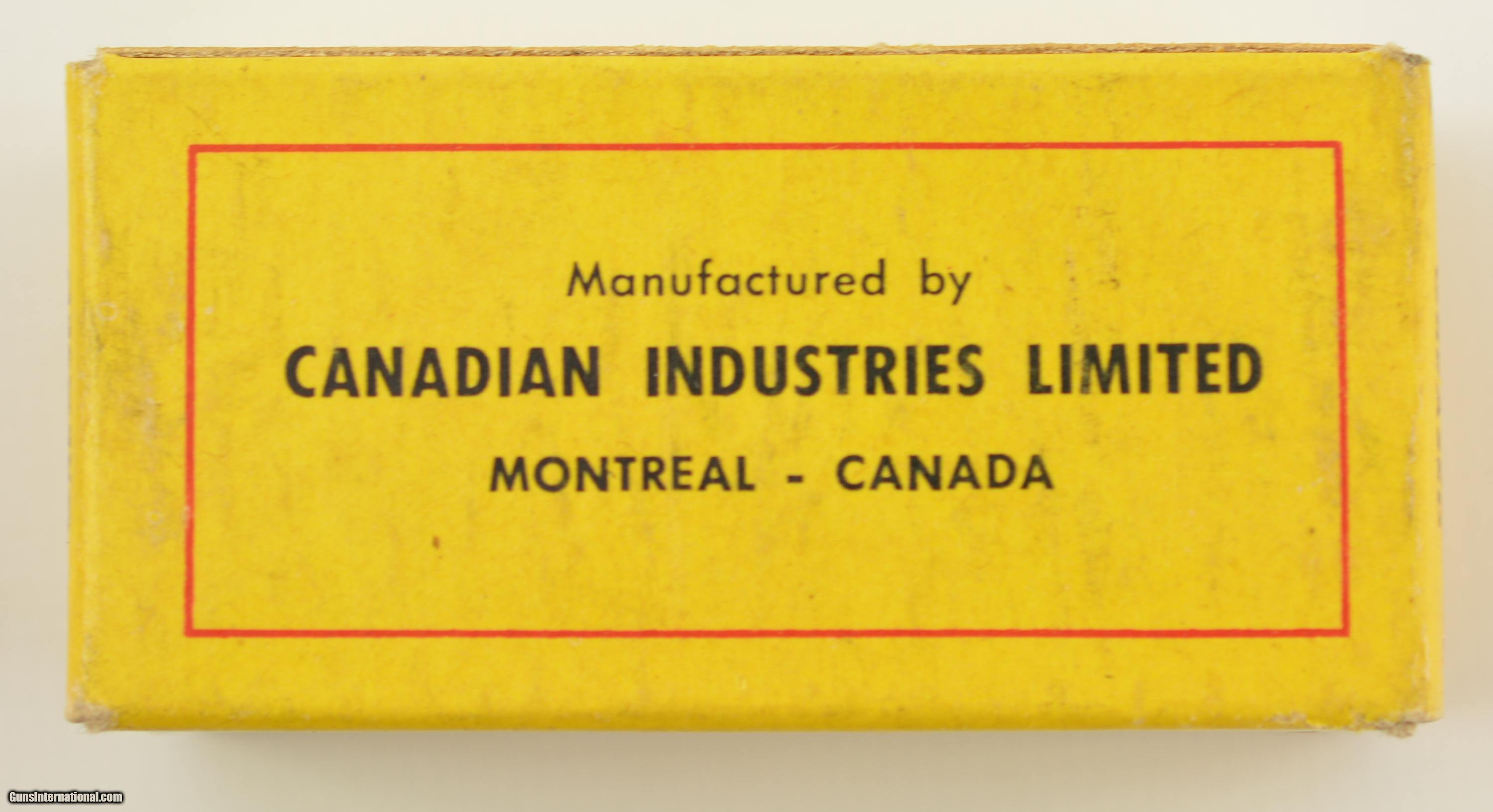 Description: This full 50 round one piece box features the 1957 trademark, it is otherwise identical to the 1950 and 1954 issues. Listed in Blyth + Dunn as CIL-8-LR-6. Box remains in excellent condition and was used from 1957 to 1961. Contains greased bullets. SOLD Manufacturer: CIL Model: Ammo Caliber Info: .22LR Gauge Info: .22LR |