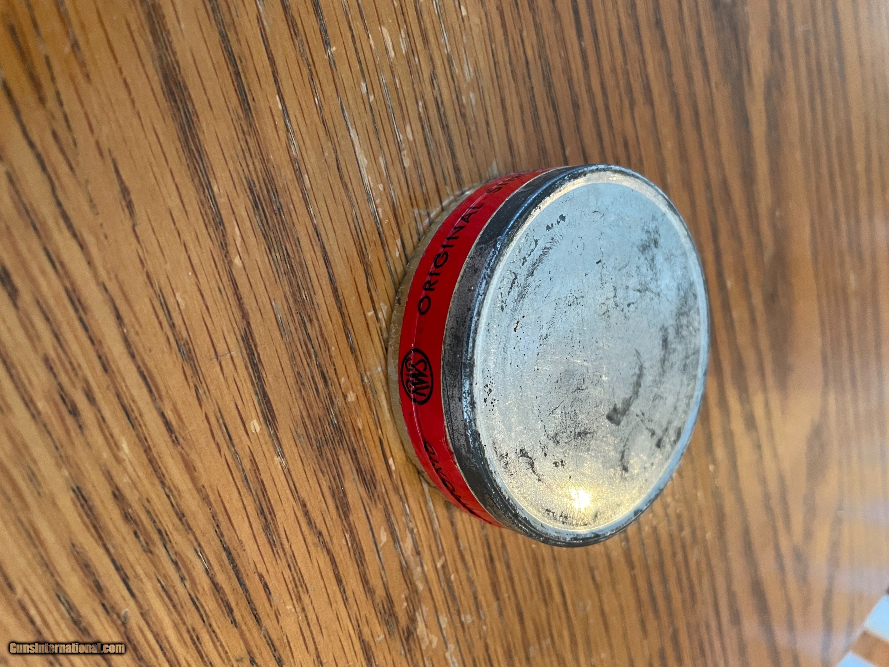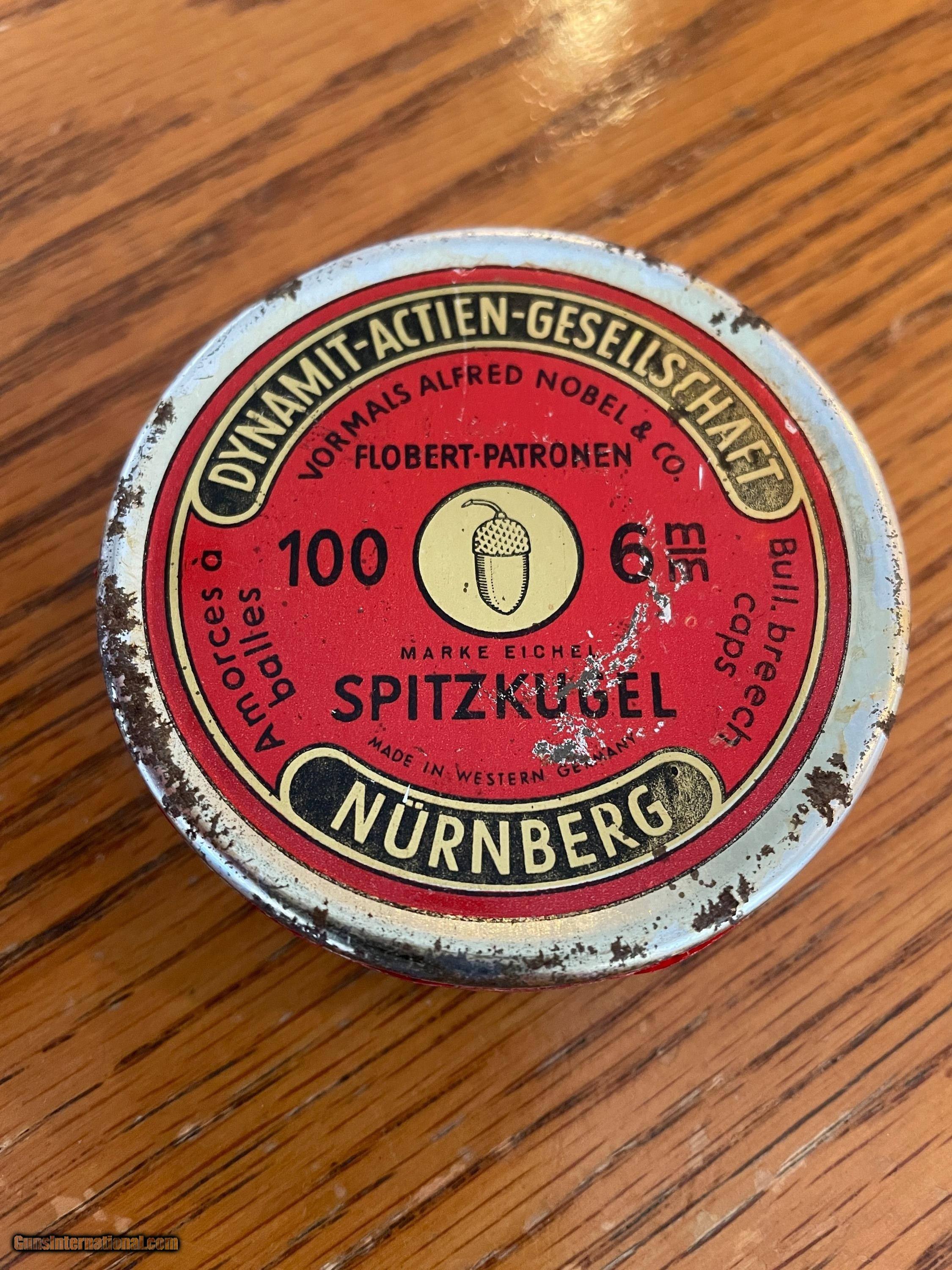 Description: Vintage sealed round tin of 6mm rimfire BB caps (100) by RWS SOLD |