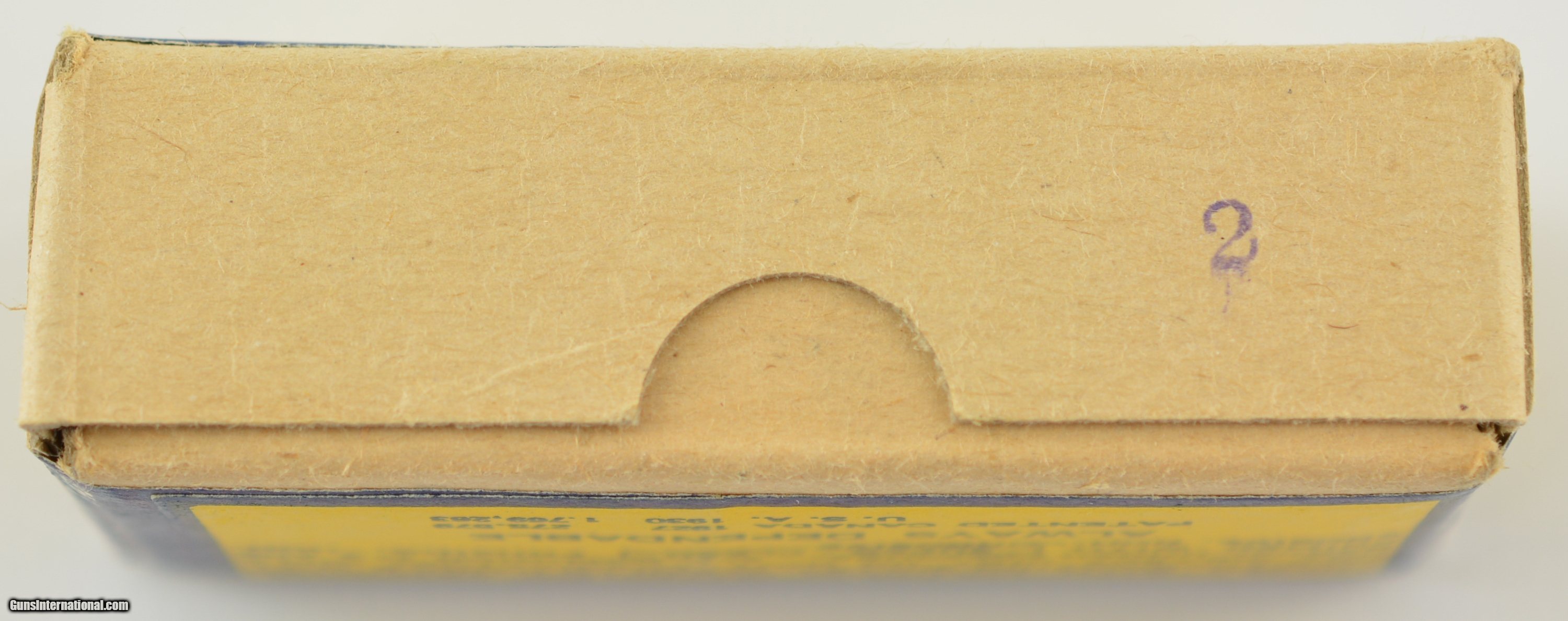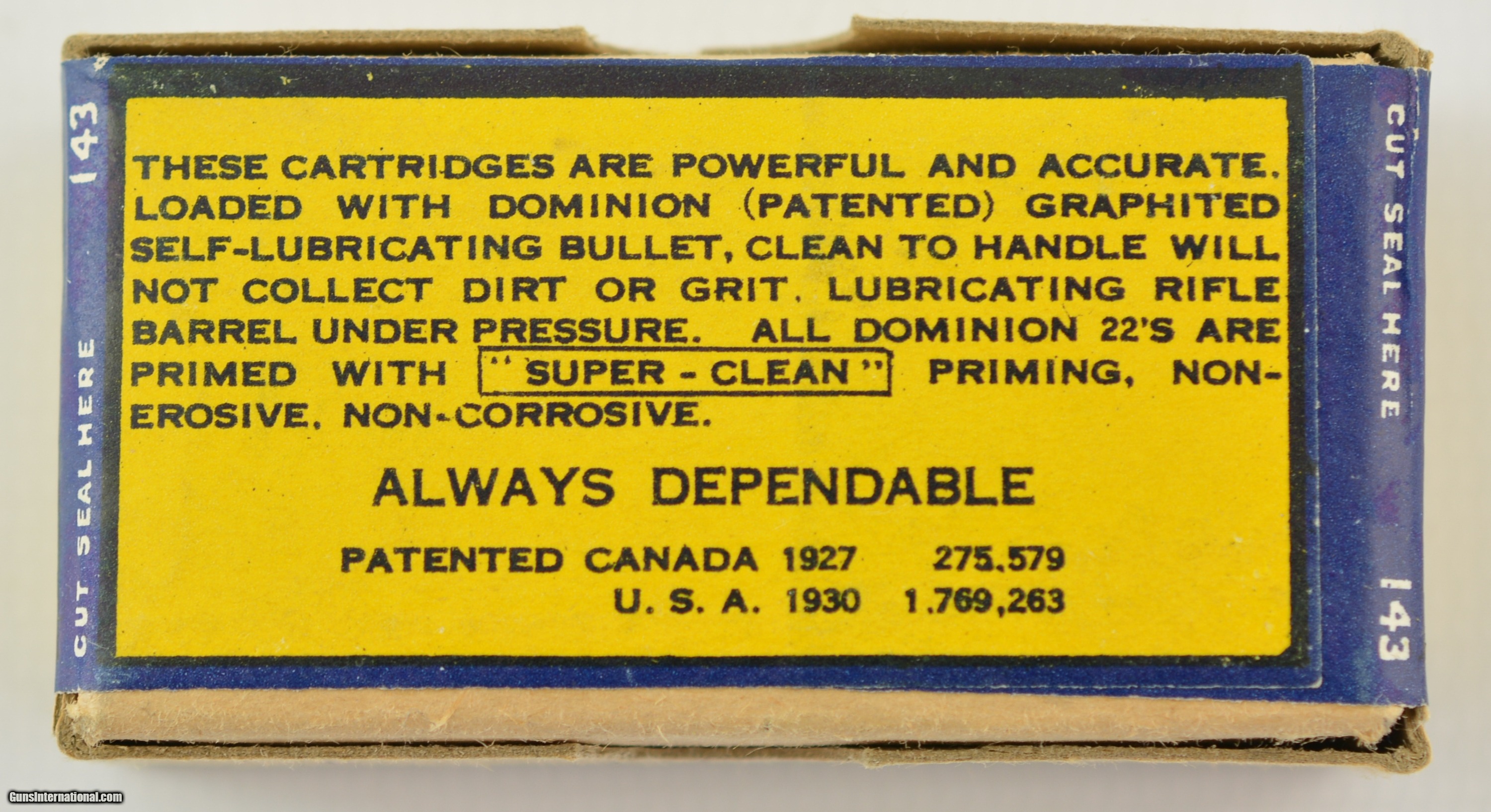 Description: This full sealed two piece full top box features the Dominion CILK oval trademark used from 1932 to 1950. Box is in new condition with bright colors, crisp corners and clean bottom. This is the early 1930's box with no print in cartridge cut. Listed in Blyth + Dunn as CIL-4-5-3. SOLD Manufacturer: CIL Model: Ammo Caliber Info: .22 Short Gauge Info: .22 Short |