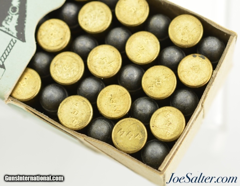 Description: This is a full box of .32 Short Rim-Fire ammunition manufactured by Navy Arms. Out of production for almost 20 years, if you own an old .32 Short RF gun this is the most recently manufactured ammo that you can buy. The ammunition is excellent with the box in very good condition showing light shop wear and stains. Increasingly hard to find. SOLD |