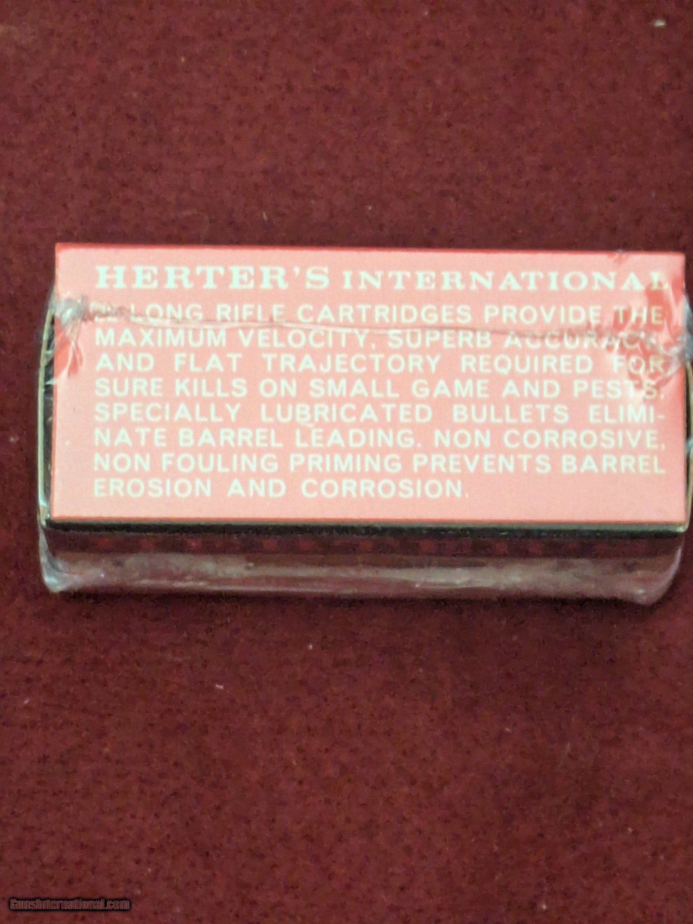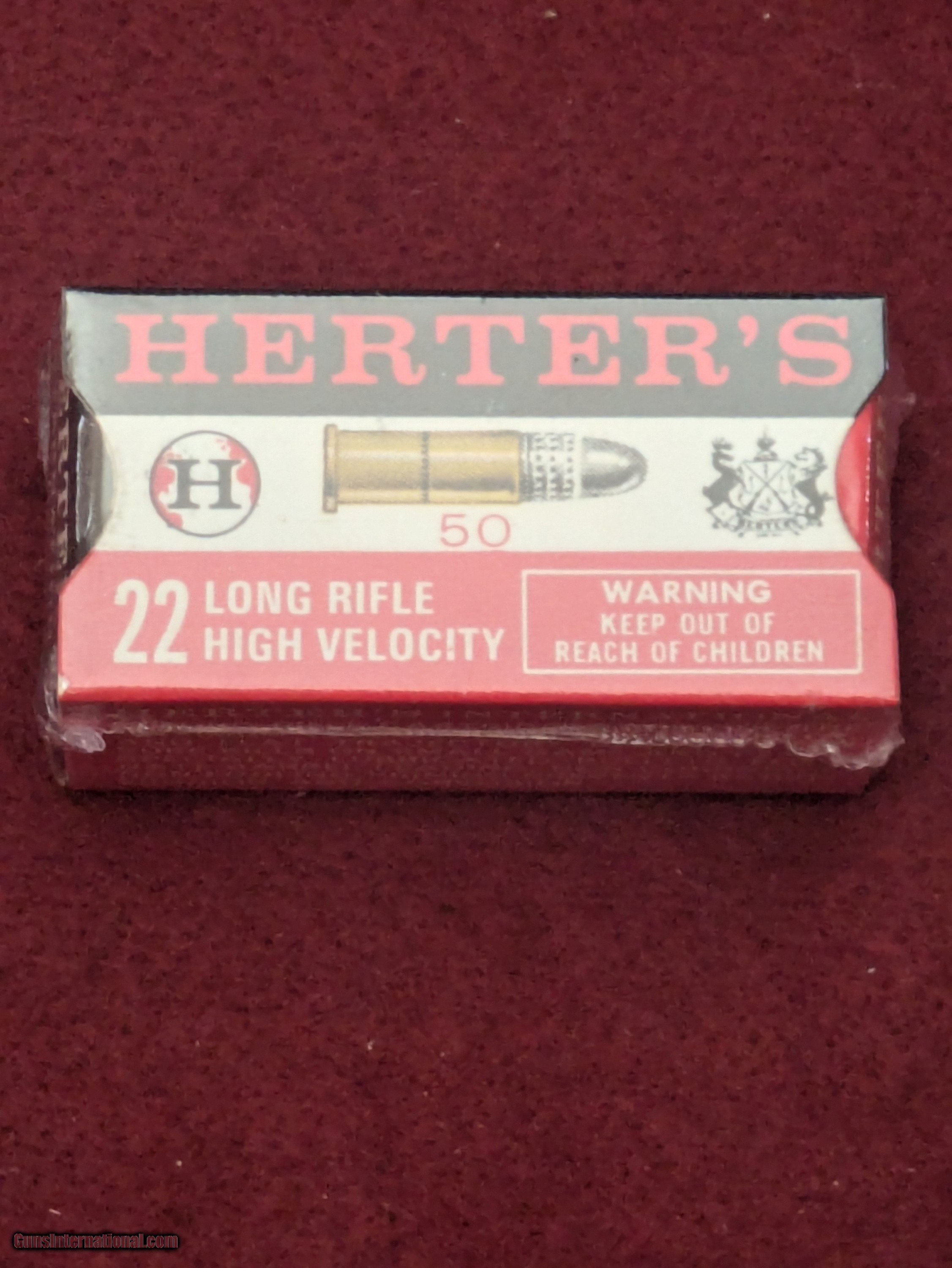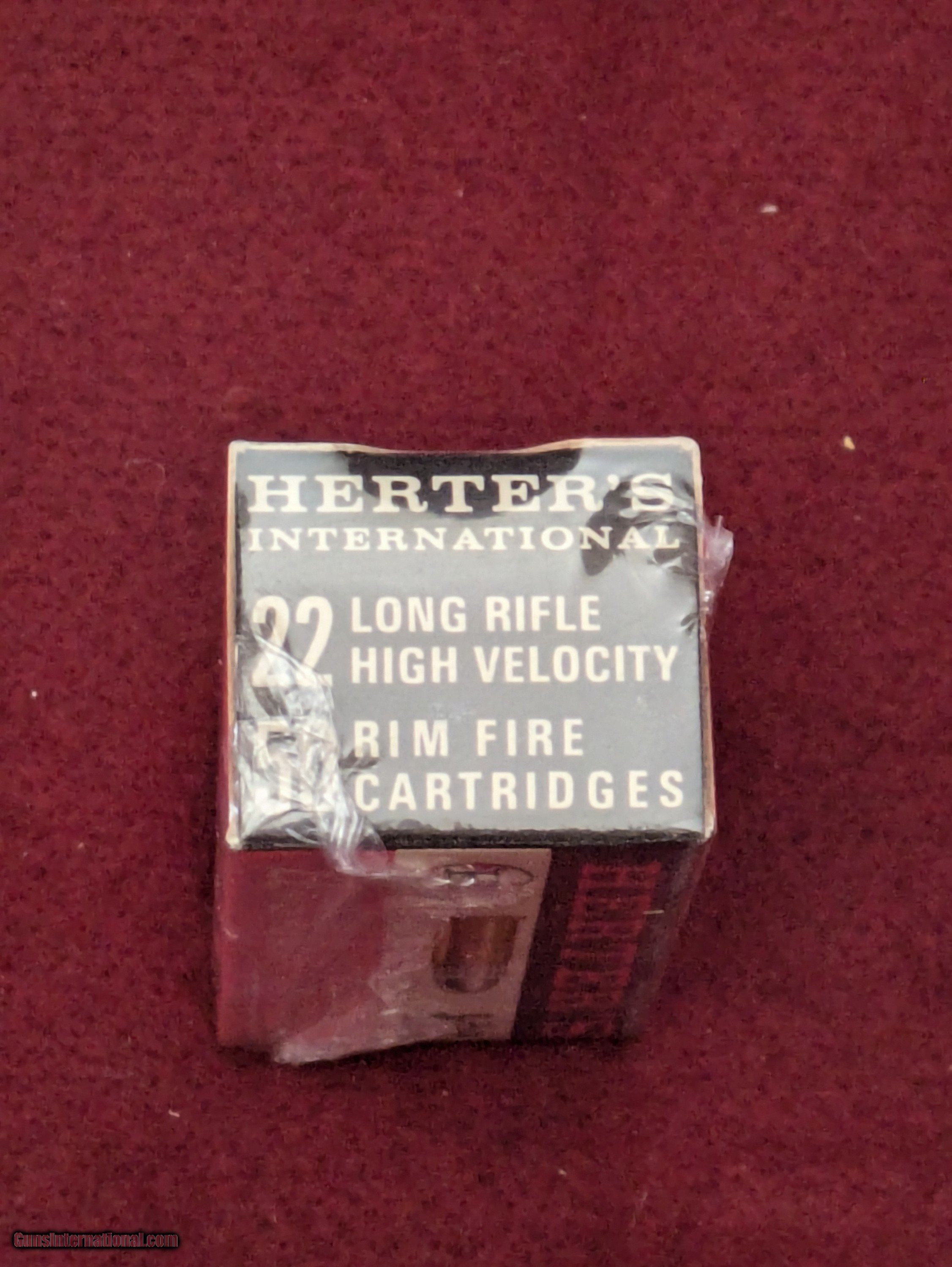 Description: HERTER'S 22LR FULL BOX of 22lr. Full 50 round box. Nice box and ammo. Box is already sealed for display. I combine shipping and also accept visa and MasterCard for payment but it adds 4 percent to total. 20.00 plus shipping SOLD |