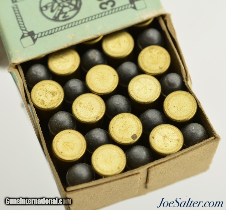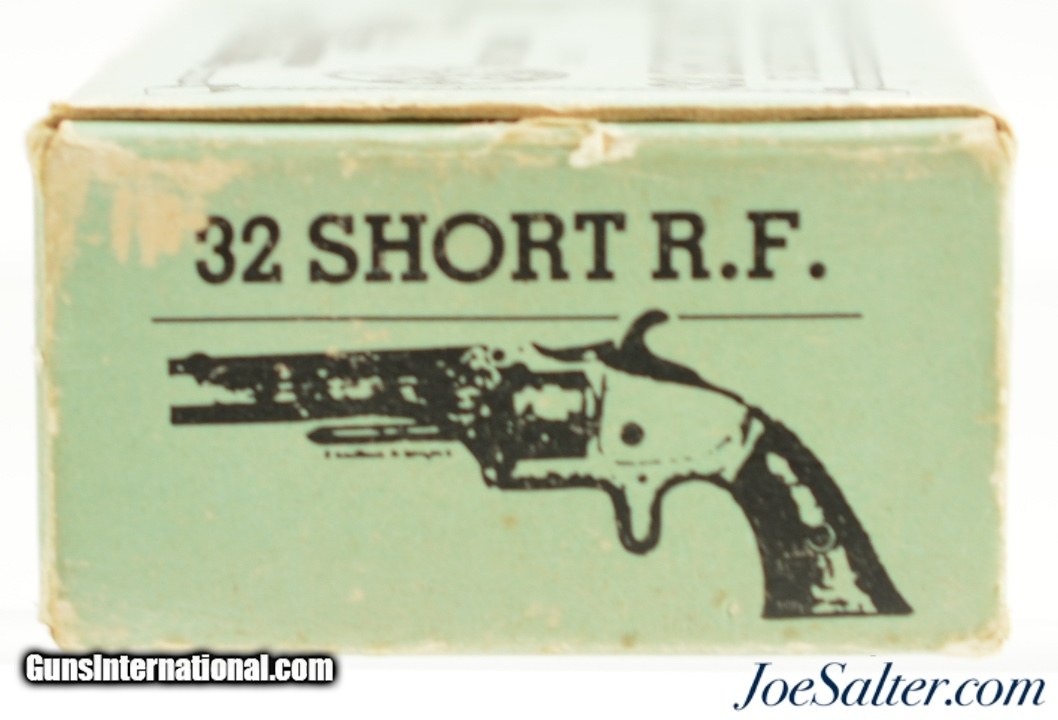 Description: This is a full box, 50 original rounds, of .32 Short RF ammo manufactured in Brazil for Navy Arms. This was the last commercial loading of this now obsolete caliber and this is the ammo you want to use. The box shows light shelf and handling wear with excellent cartridges. SOLD |