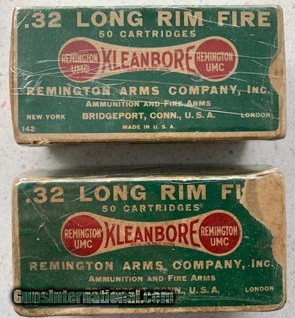 Description: Remington Kleanbore .23 Long Rim Fire - 50 Cartridges. 2 boxes. Boxes in fair condition. SOLD Handgun Caliber: .32 Rimfire |