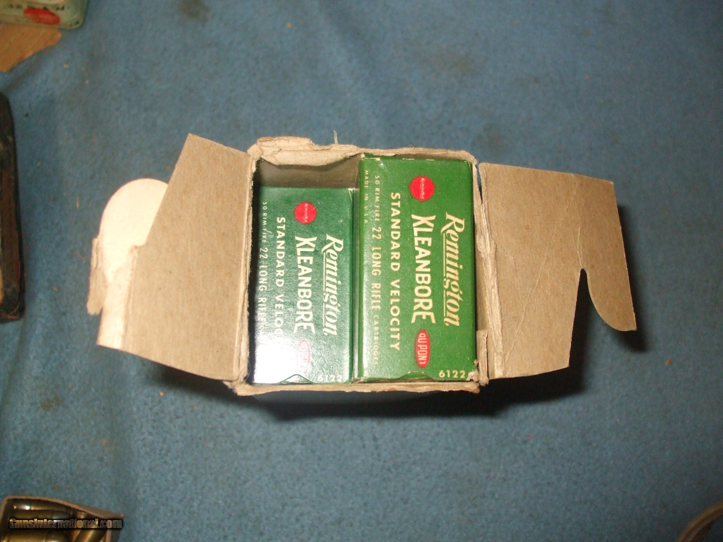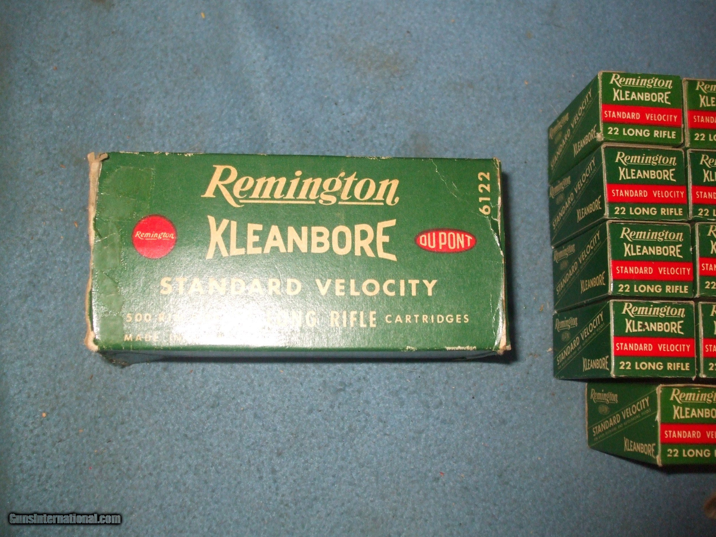 Description: Remington Kleanbore 22LR standard velocity. Code 6122. 9 50rd boxes and carton. Carton has one end flap missing. 9 individual boxes excellent condition ammo excellent. Please note cannot ship to CA, MA, NJ, IL or any other restricted areas. I am located in Delaware and can deliver locally. SOLD Rifle Caliber: .22 Long Rifle |