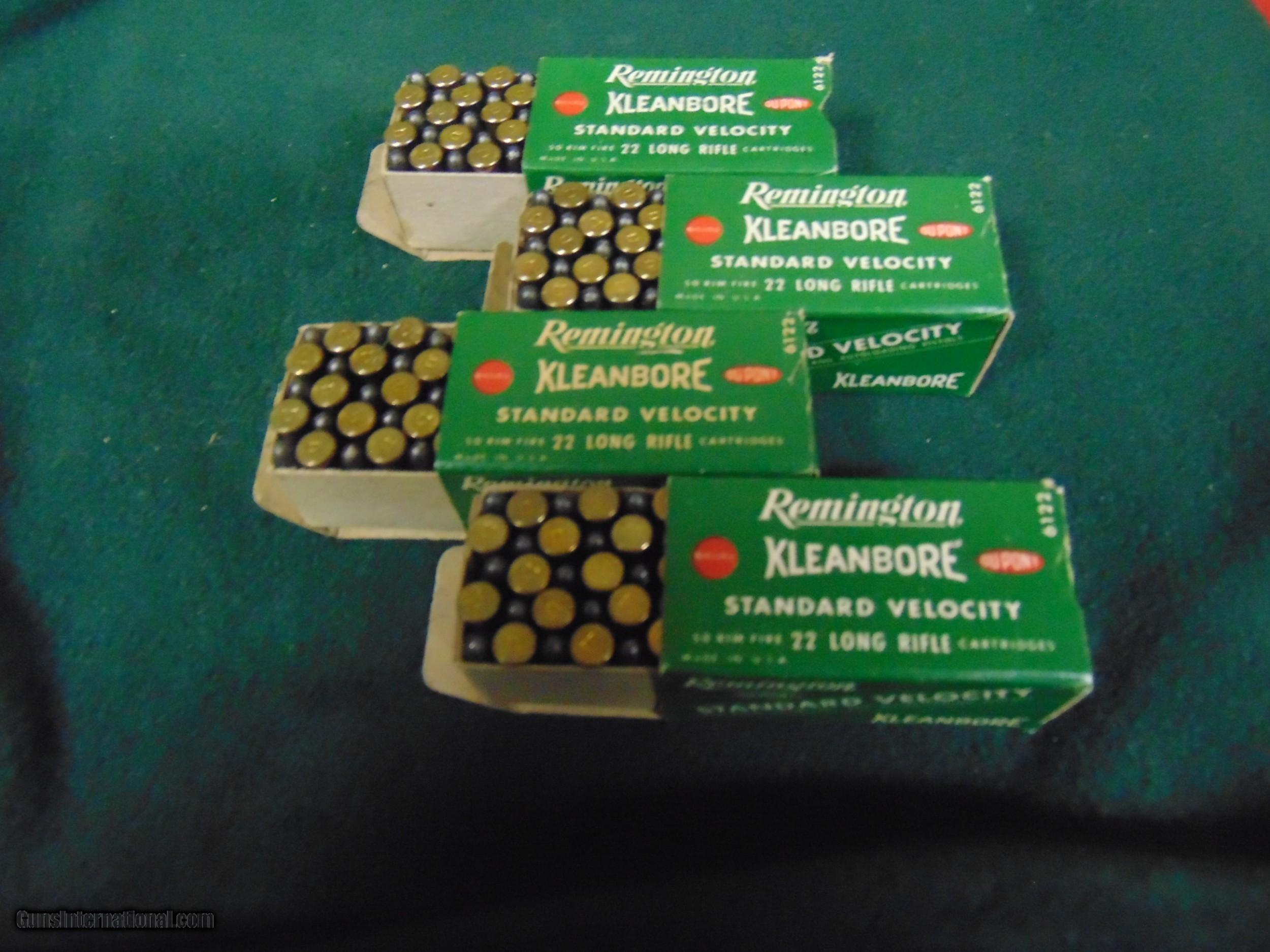 Description: For sale are 4 brick fresh boxes of Remington Kleanbore Standard Velocity 22 long rifle, shells and boxes are mint. Buyer pays actual shipping, need more info. give us a call. SOLD |