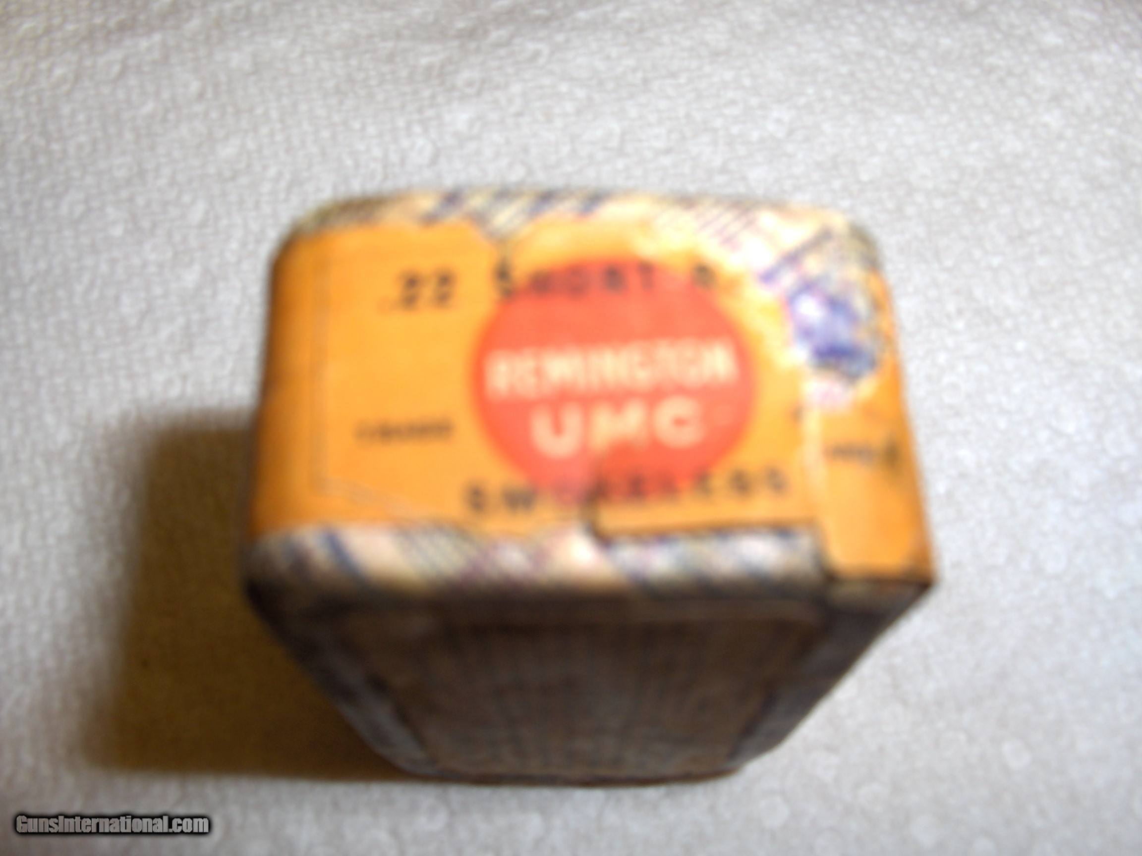 Description: Sealed box of 22 short. Picture box with cartridge on top and Remington model 12 on side. SOLD |
