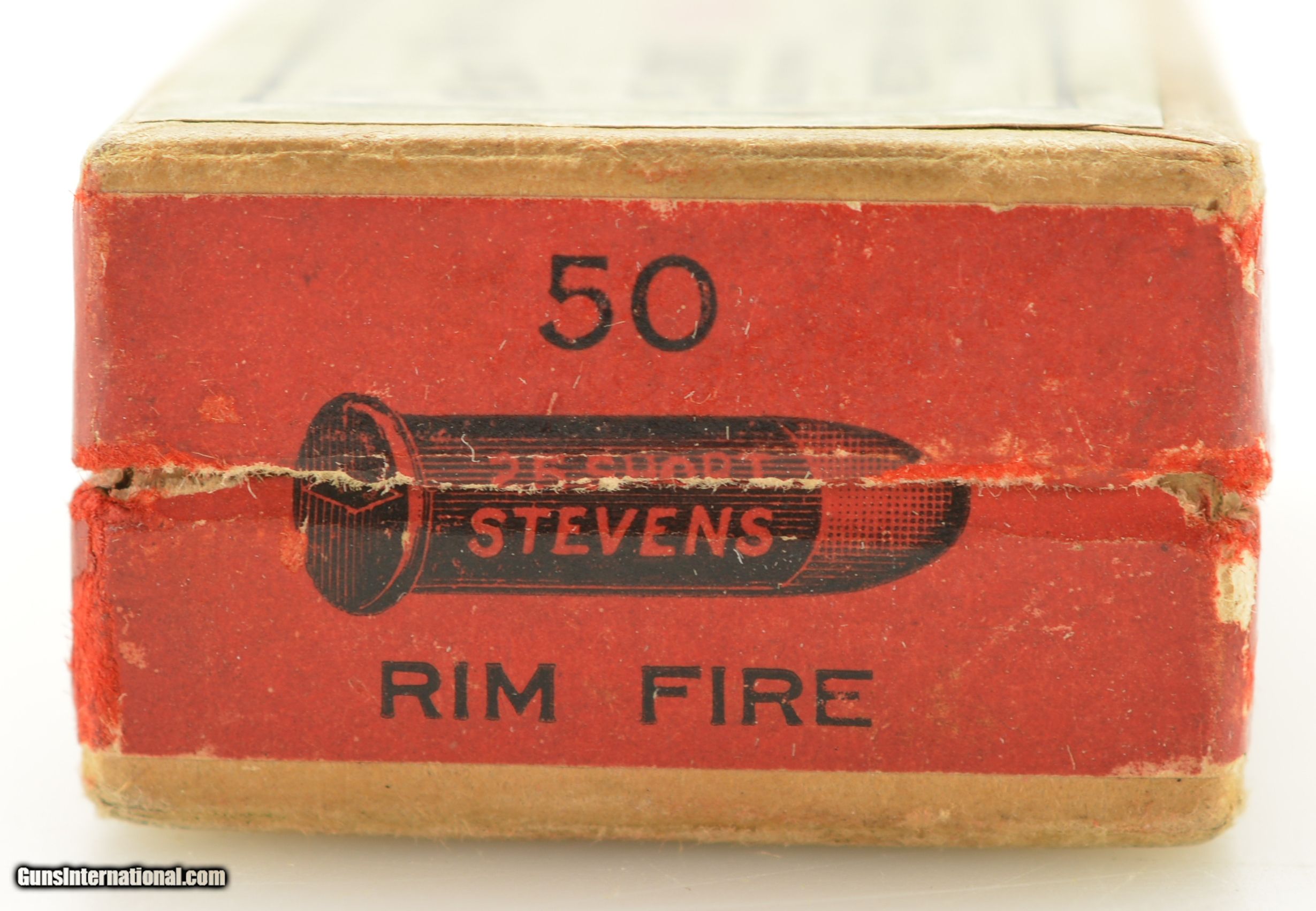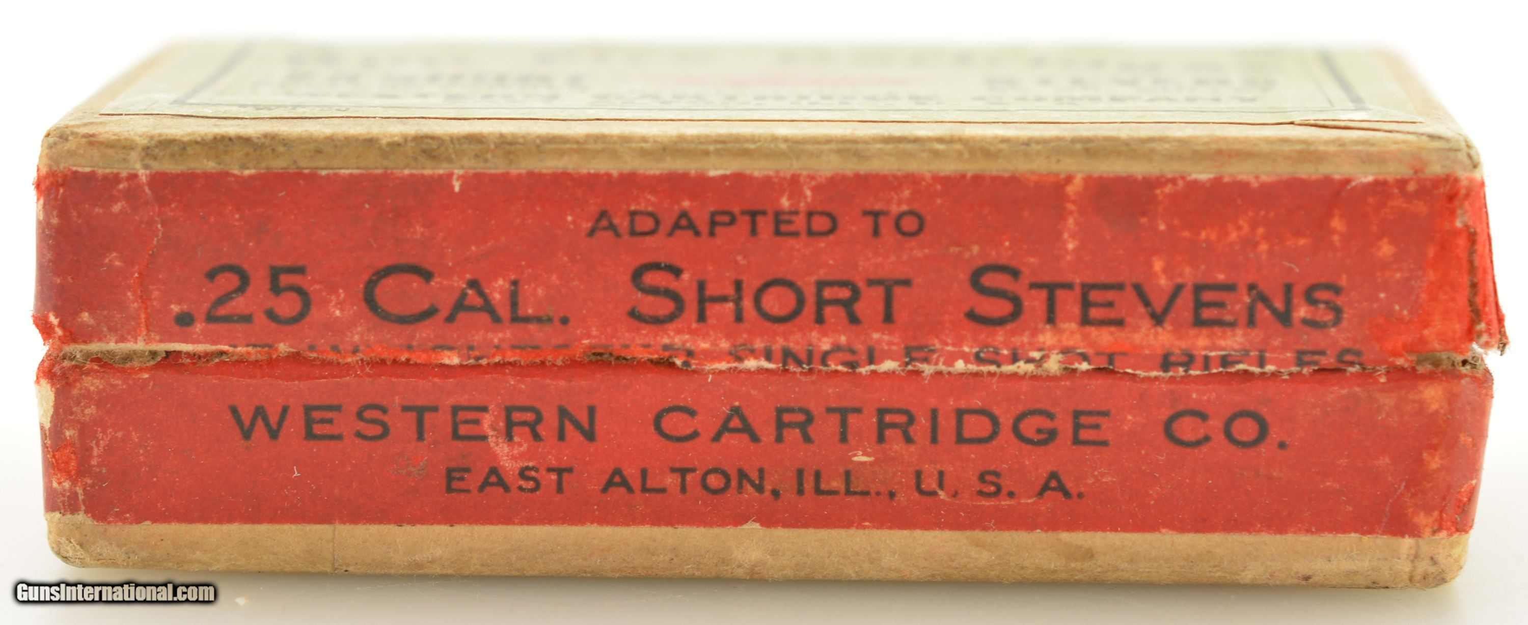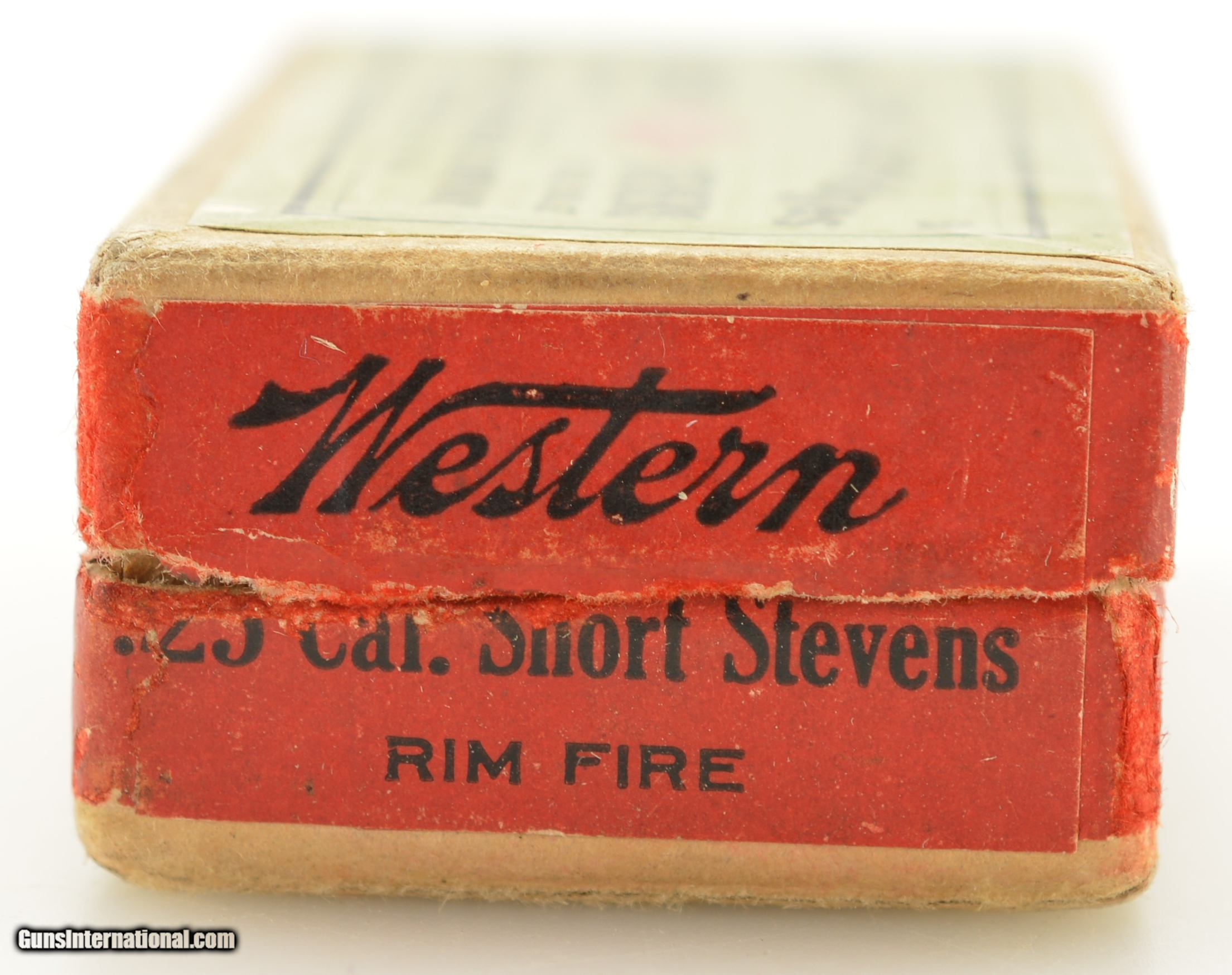 Scarce Western 25 Short Stevens Rim Fire Ammunition Full Box