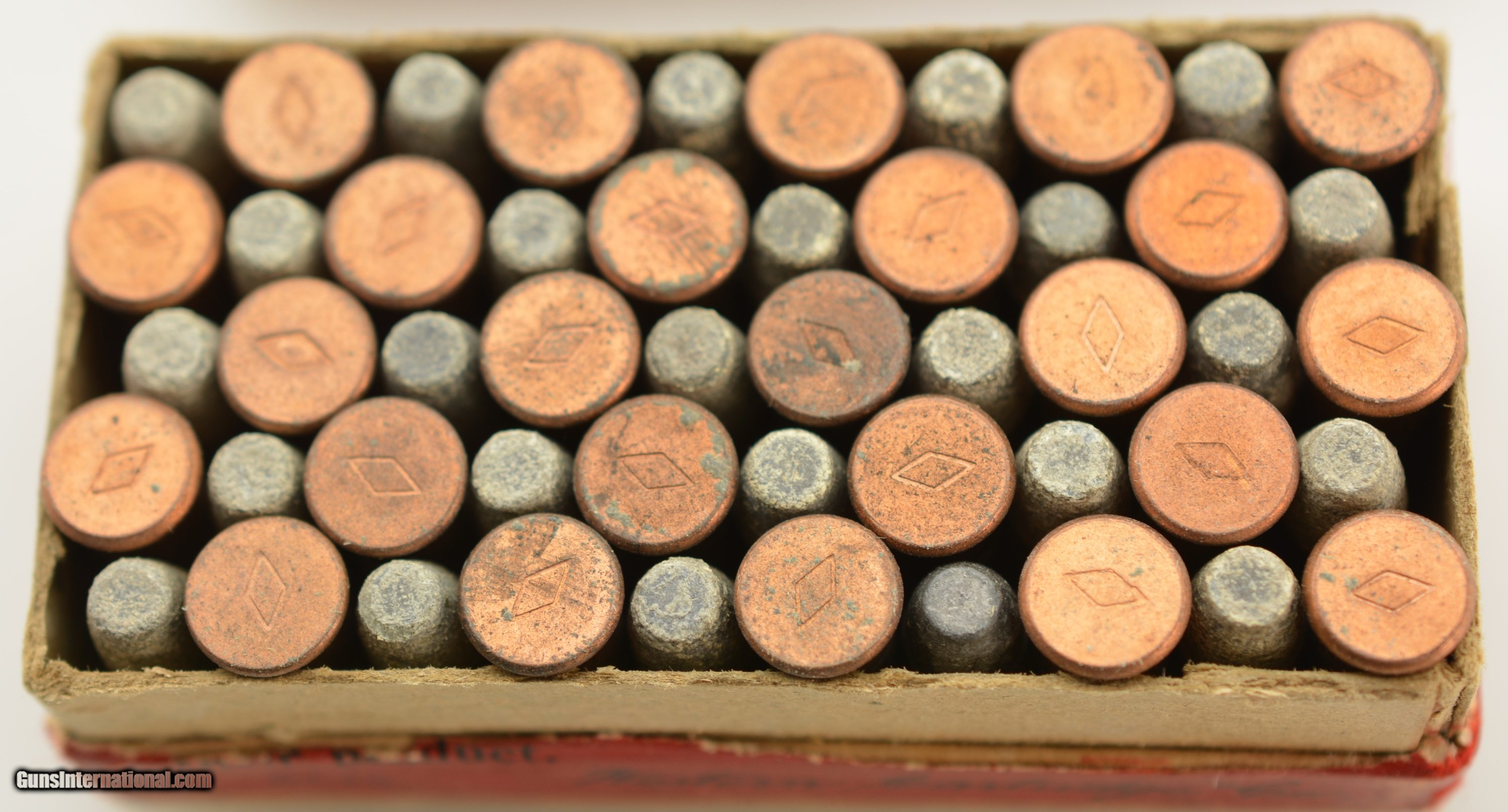 Description: This is a full box, 50 original rounds of the seldom-seen .25 Short Stevens Rim Fire ammunition with 65 grain bullets and “Nublend Powder." The two piece buff box is solid with green top label and Red Western Diamond logo and red side label all intact with only minor rub wear and light age soiling. The cartridges are in very good to near excellent condition with lead oxidation on the bullets. SOLD Manufacturer: Western Model: Ammo Caliber Info: .25 Short Steve Gauge Info: .25 Short Steve |