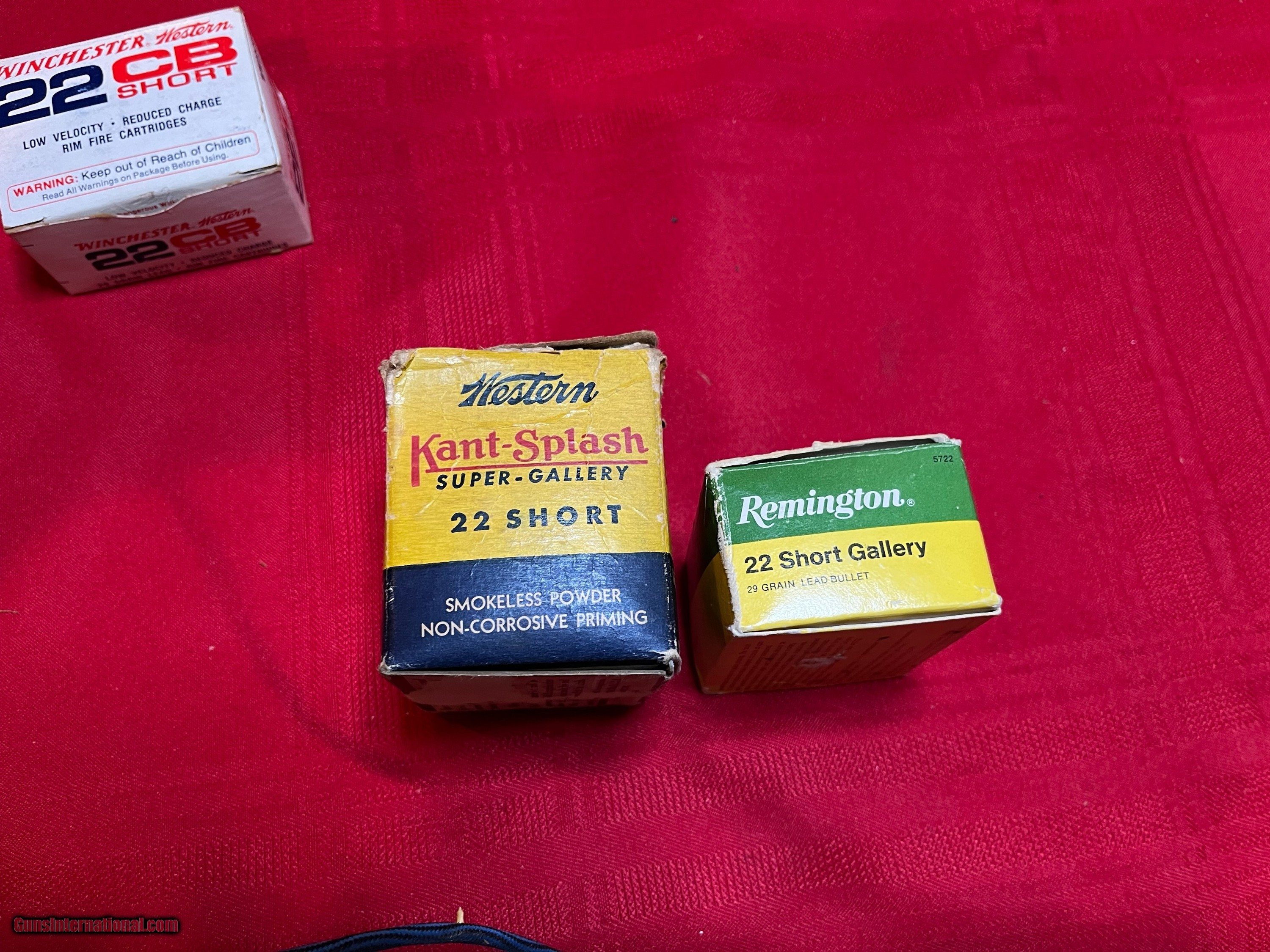 Description: 1 box of 250 Remington 22 gallery shorts 1/2 box (250) Western 22 gallery shorts. SOLD Rifle Caliber: .22 Short |