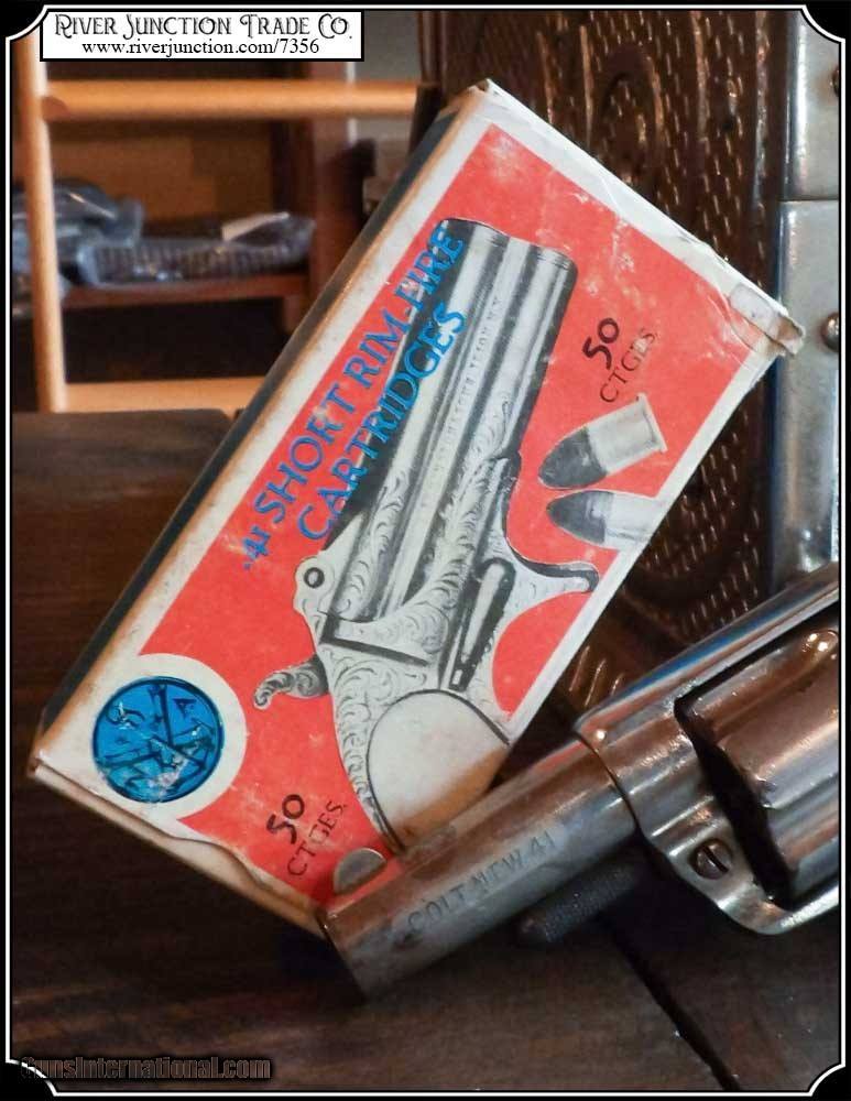 Description: Navy Arms, .41 Rim-fire Short ammunition per Box of 50. These have not been made for many years. They are new old stock and are guaranteed 100% functional. There was an array of .41 Rimfire Revolvers and Pistols. They include: Colt New Line, Forehand and Wadworth Swamp Angle, Remington Number 4, Brown Southerner, Remington O/U, C.H. Ballard, Colt House Pistol, Colt Thuer Derringer, Colt Gloverleaf, and on and on. The guns shown are not included. Price: $400.00 Buy Now Contact Seller |
