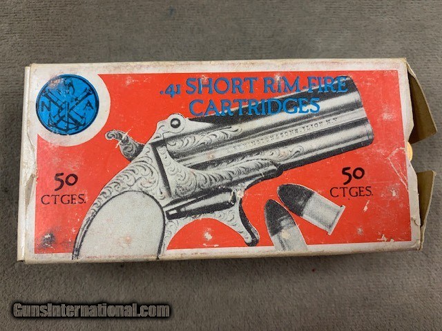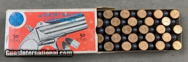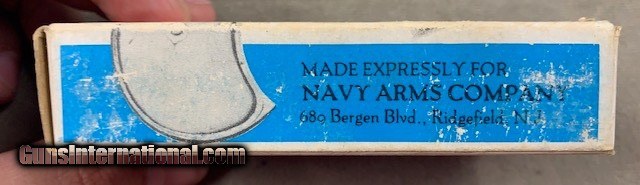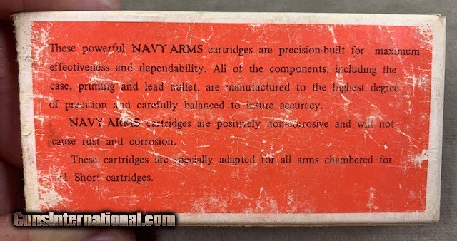 Description: This is a full box of 50 each .41 Caliber Rim Fire Cartridges as sold by Navy Arms years ago. Ammo is in excellent condition as shown. Box is good but one end flap is missing (see photos). Very hard to find these days. SOLD Handgun Caliber: .41 Rimfire |