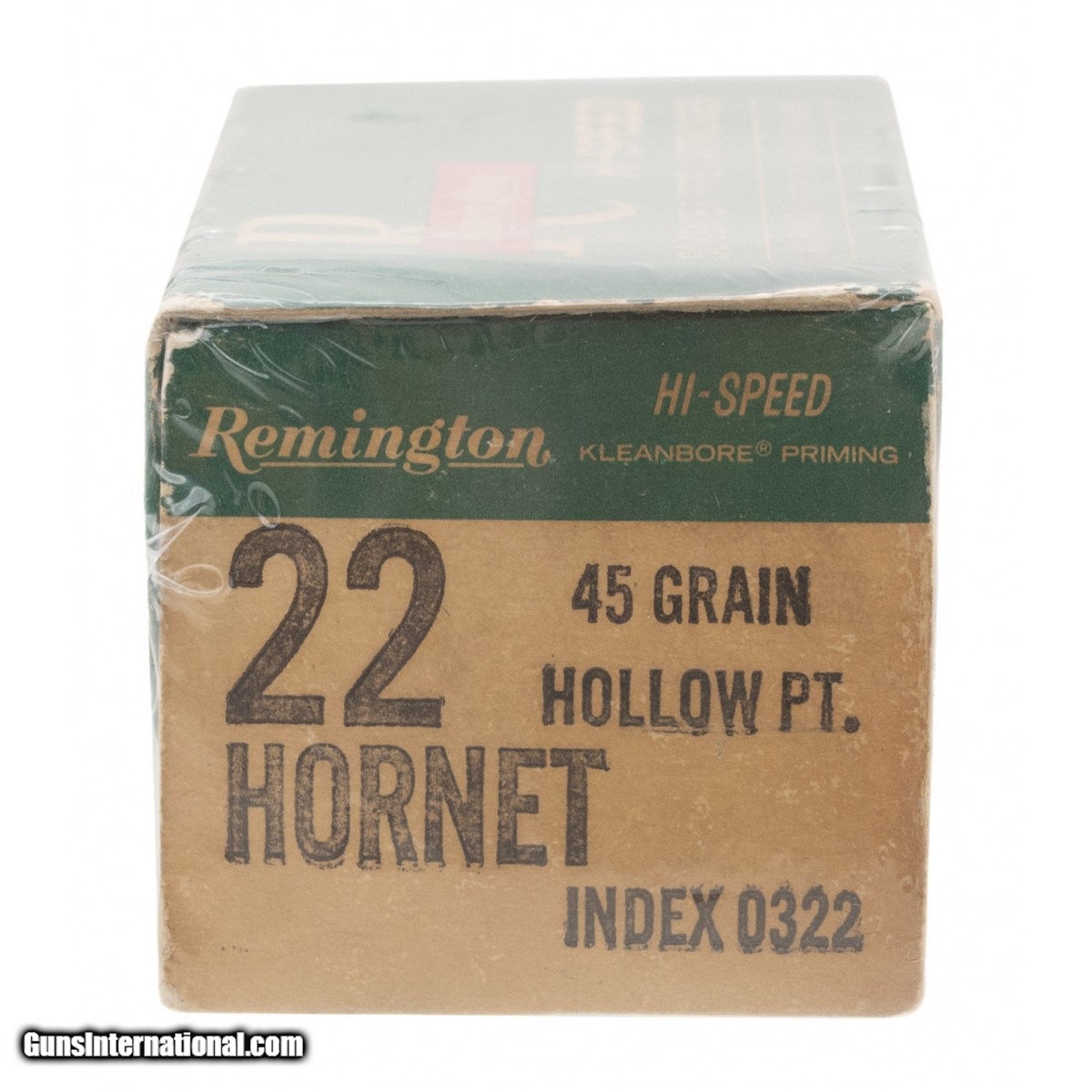Description: " 22 Hornet CF 45grn Hollow Point Cartridges by Remington. Full Box of 50. SOLD |